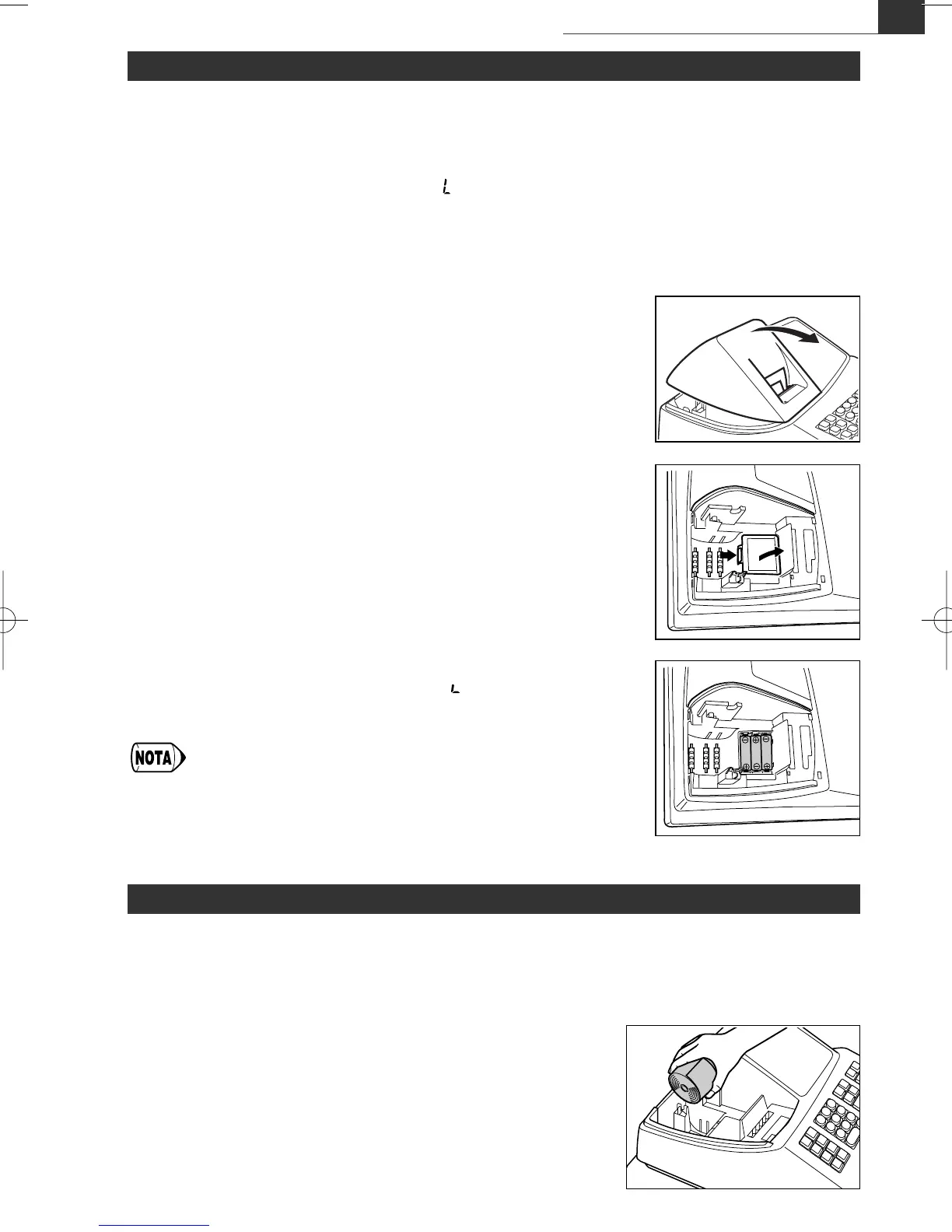 Trois piles neuves R6 ou LR6 (format “AA”) doivent être installées dans la caisse enregistreuse
