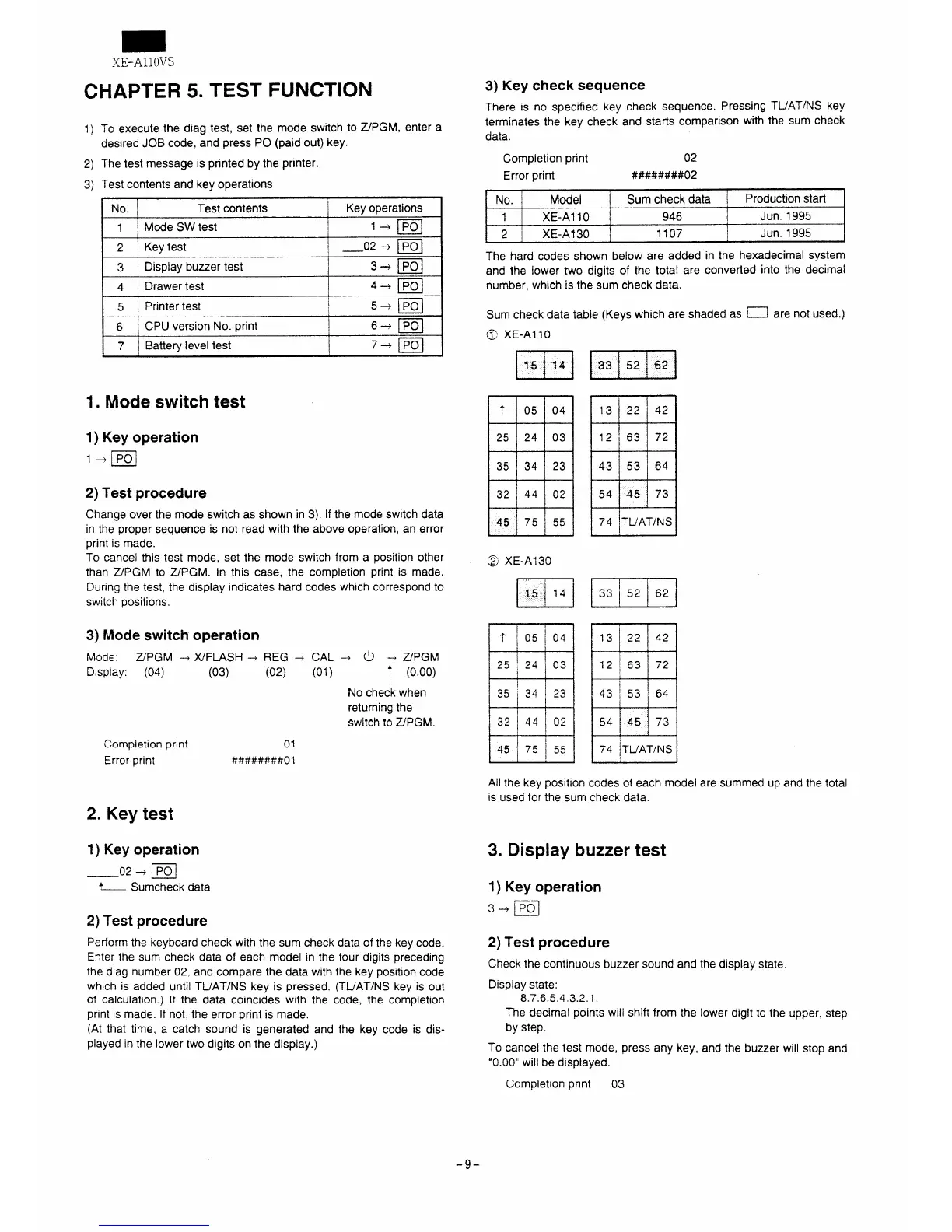 Sum check data table (Keys which are shaded as ~ are not used.)