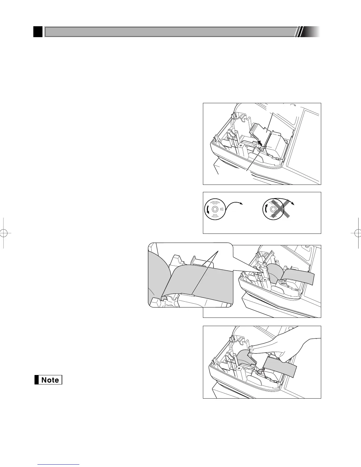 Install the paper roll according to the procedure shown below with the AC cord connected and the mode switch