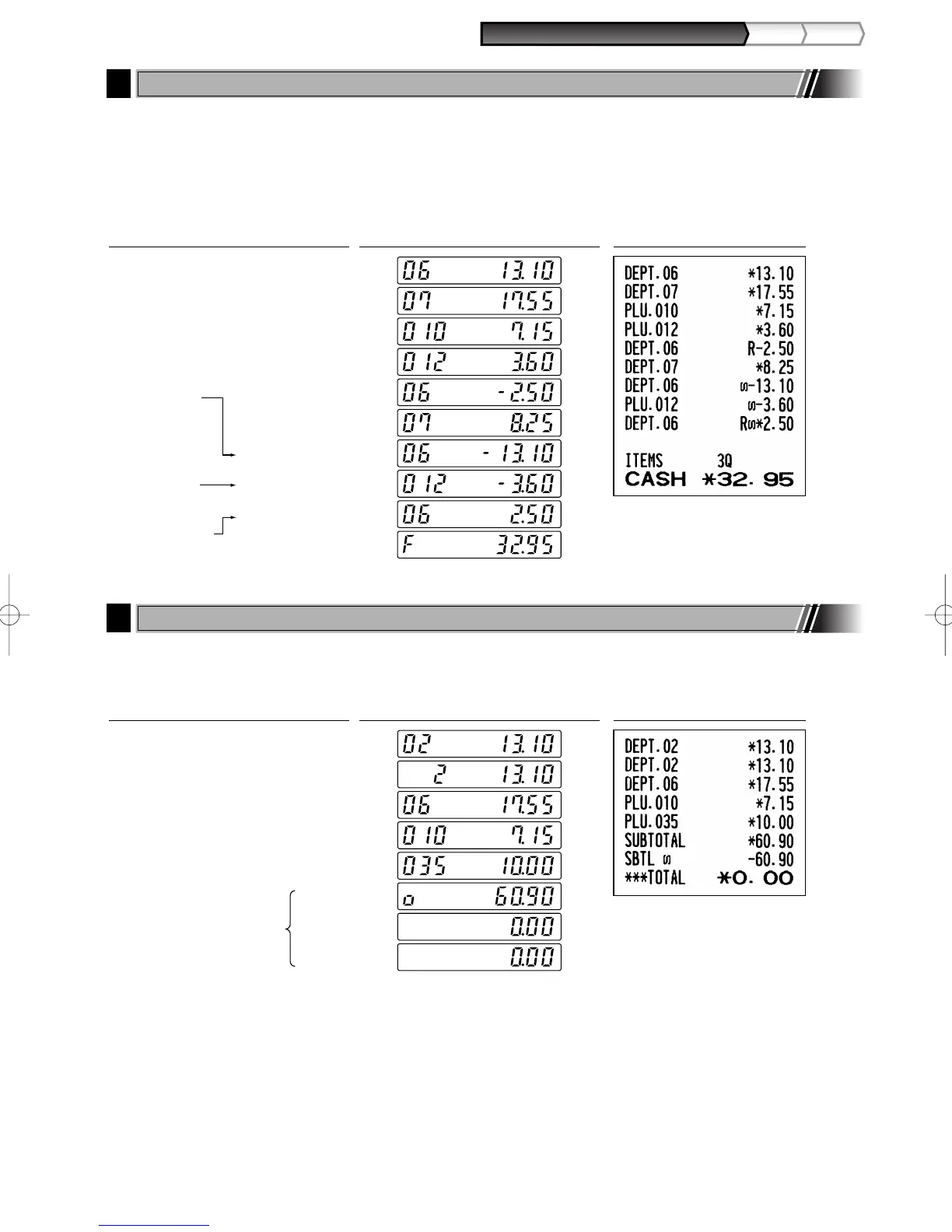 issues a receipt. This function does not work when more than 30 items have been entered.