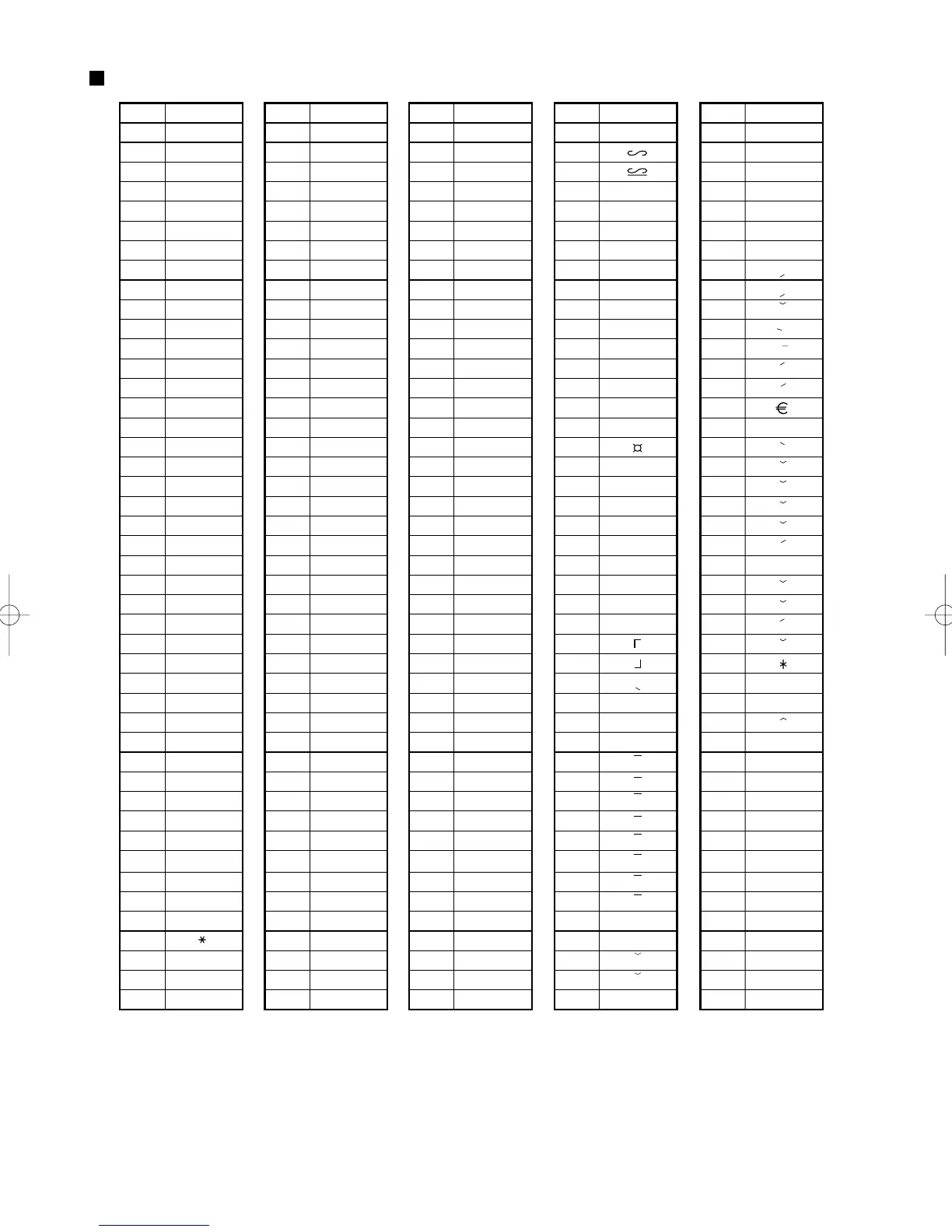Sharp XE-A113 - Tabel Met Codes Voor Tekens, Letters, Cijfers en Symbolen