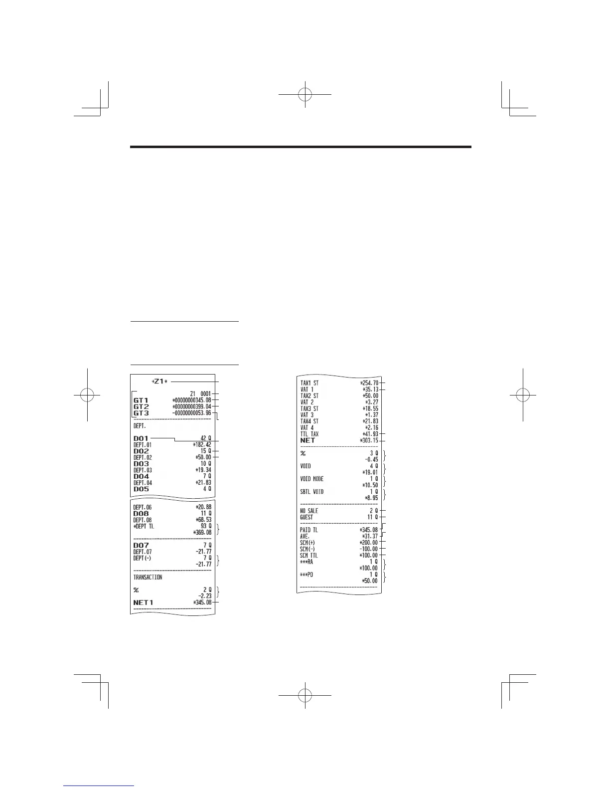 *1: When you take X1 report, “X1” is printed.