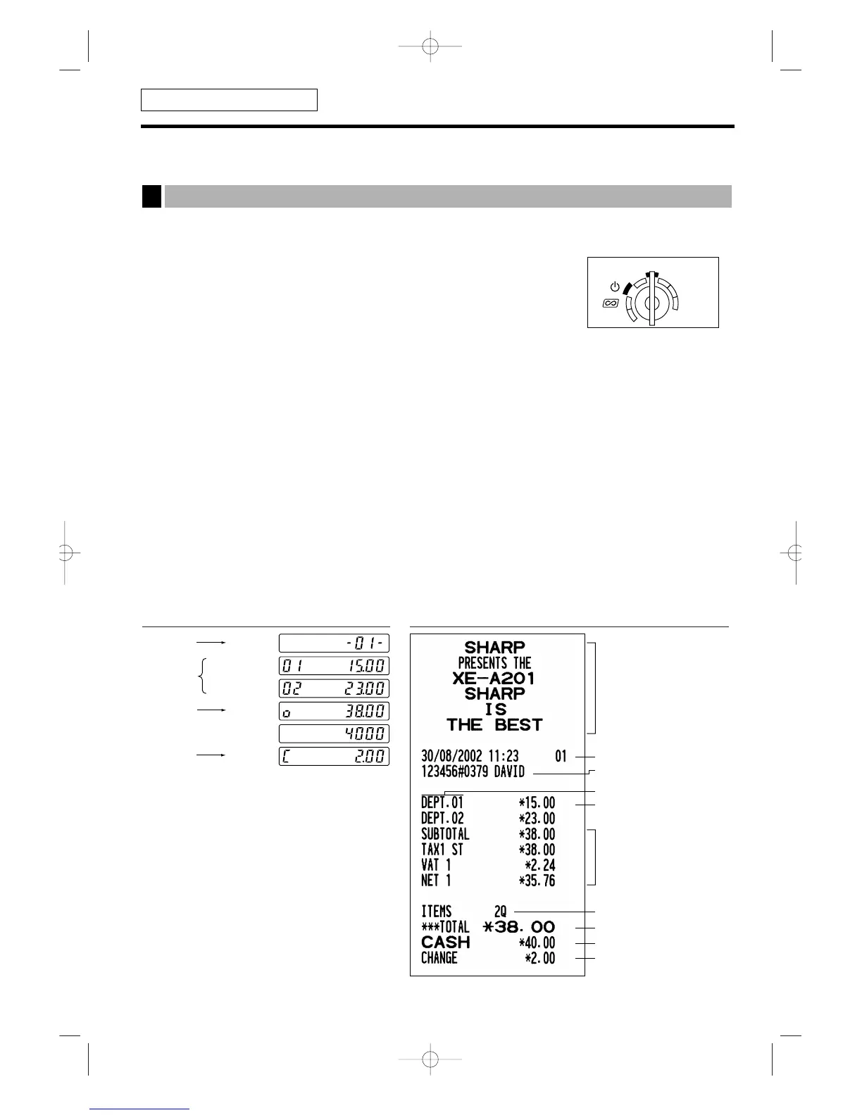 Listed below is a basic sales entry example when selling items by cash. For operation details, please refer to
