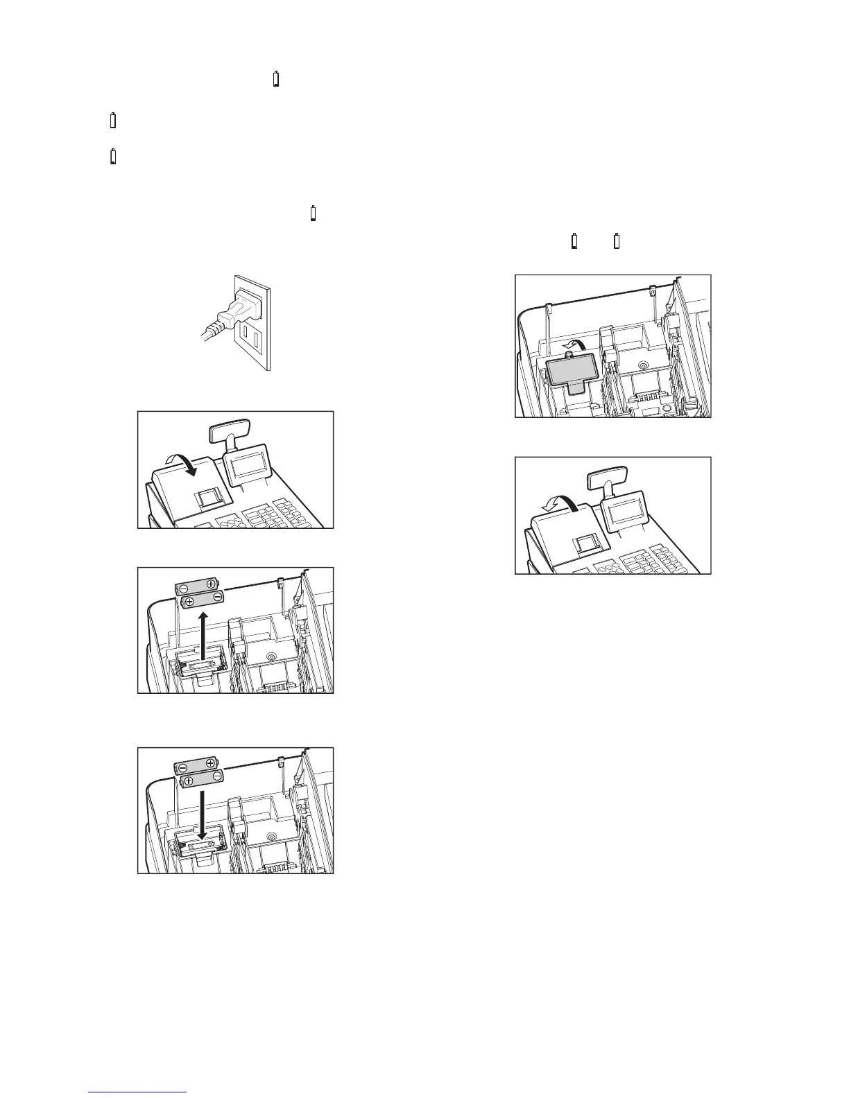 • Be sure to confirm that the power plug is inserted into the power outlet before replacing the batteries. If not, the registered data will be deleted. Use