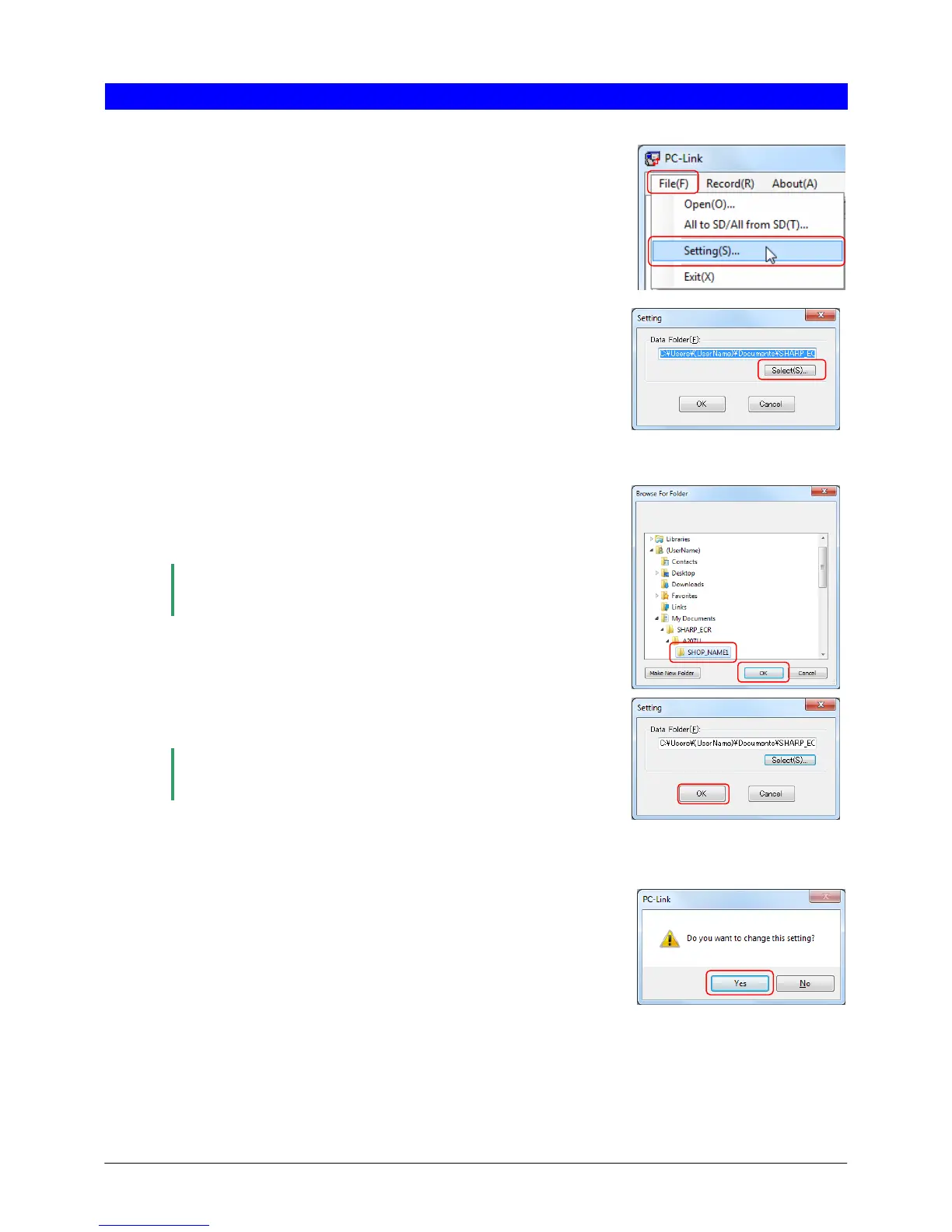 The data folder setting dialog appears.