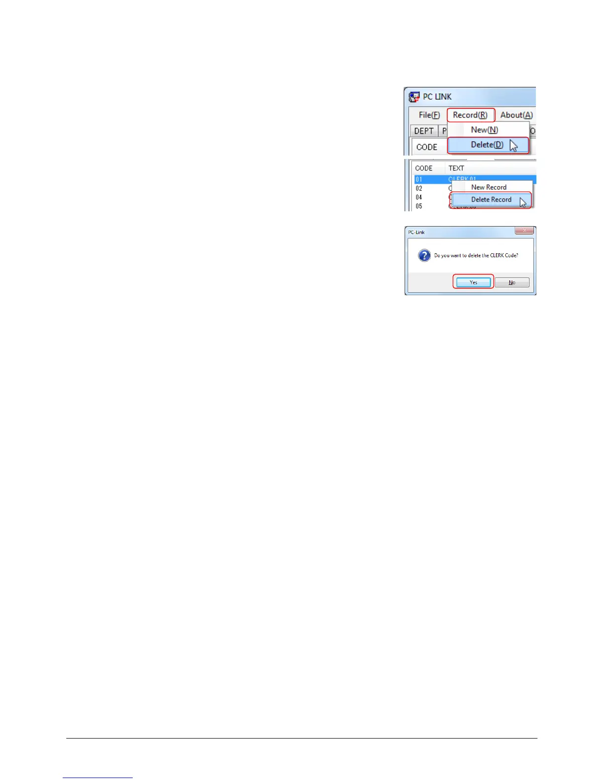 1. Select the clerk data you want to delete, click [Record] and then [Delete].