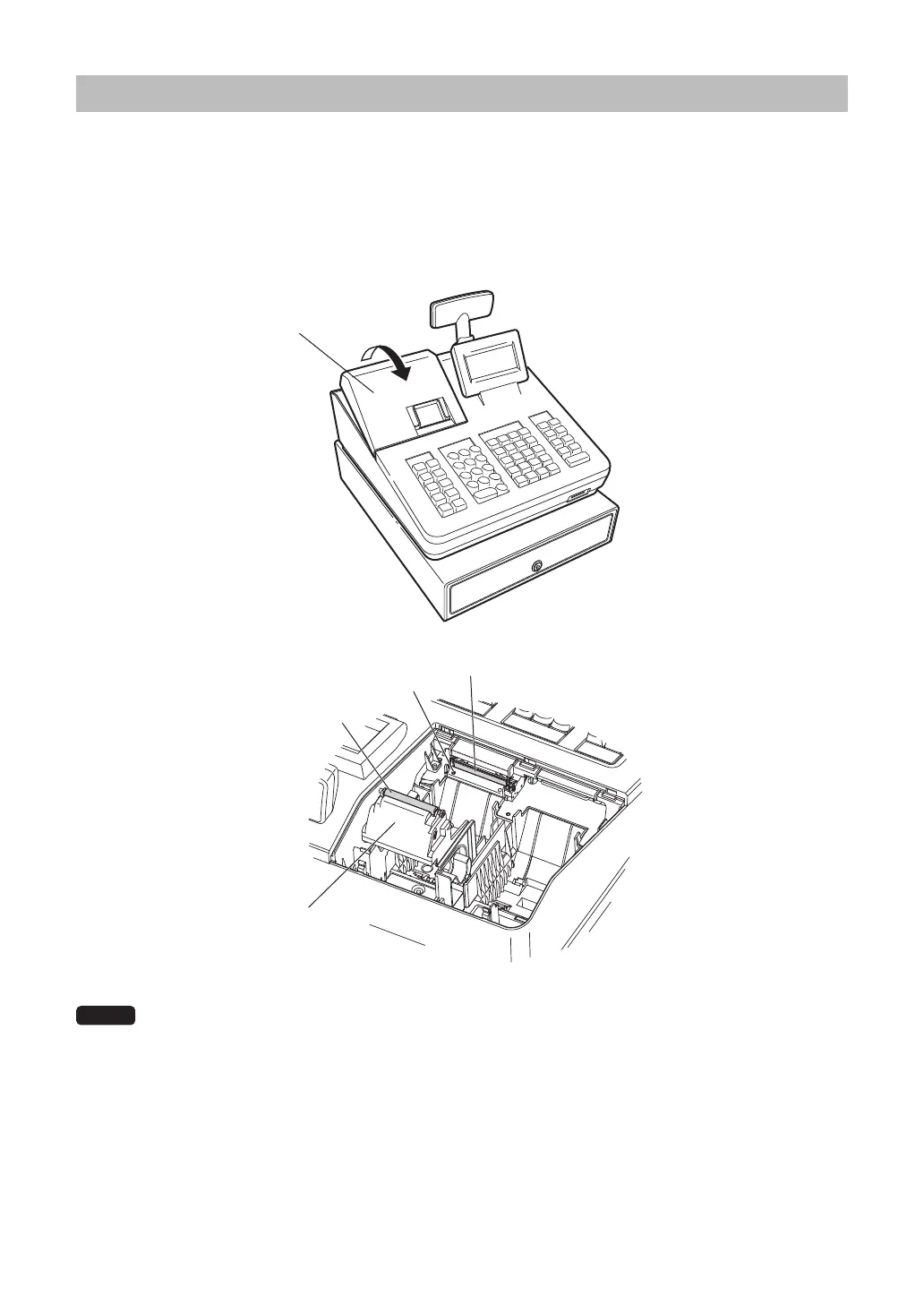 Caution: The paper cutter is mounted on the printer cover. Be careful not to cut yourself.