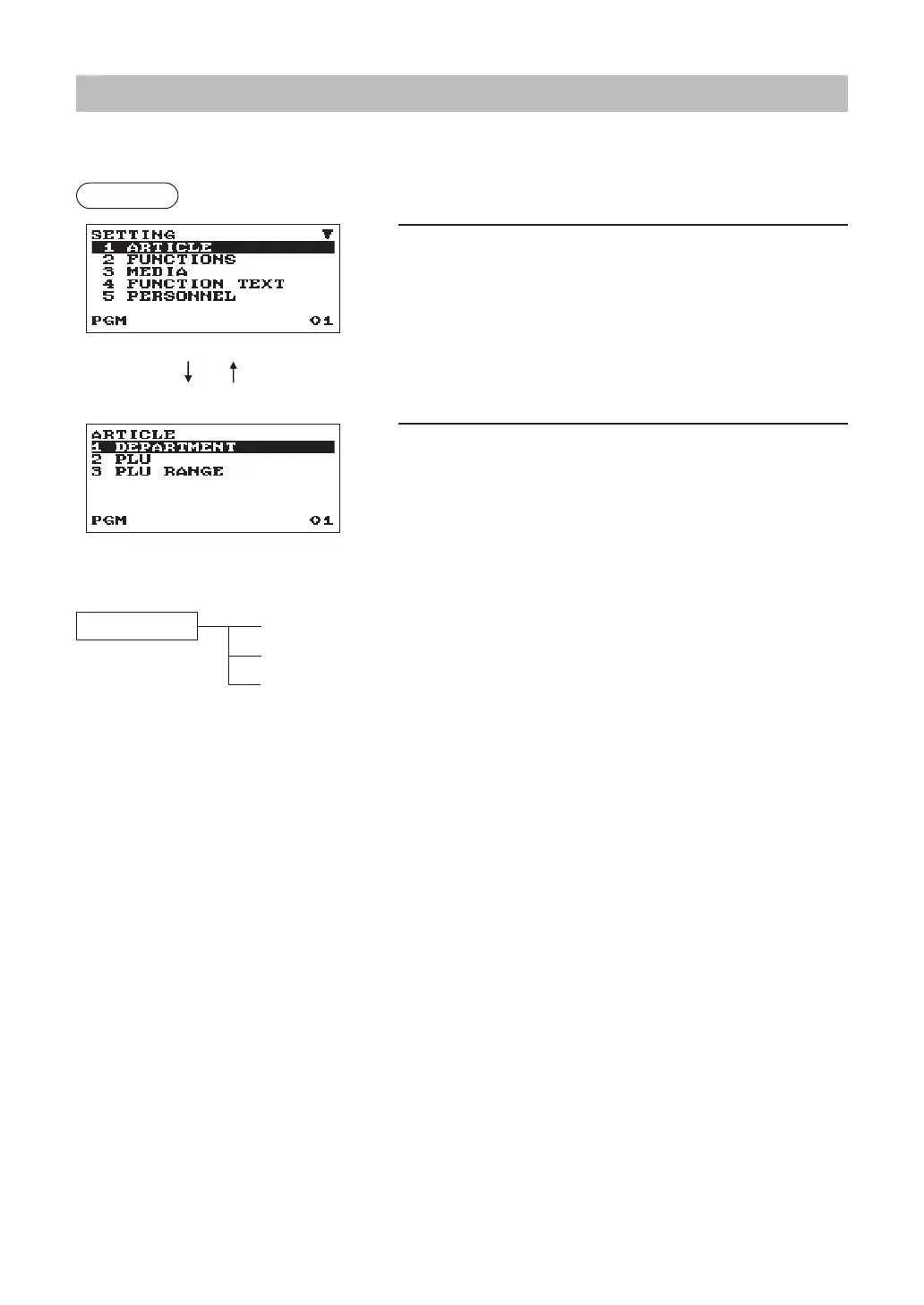 In the SETTING window, select “1 ARTICLE.”