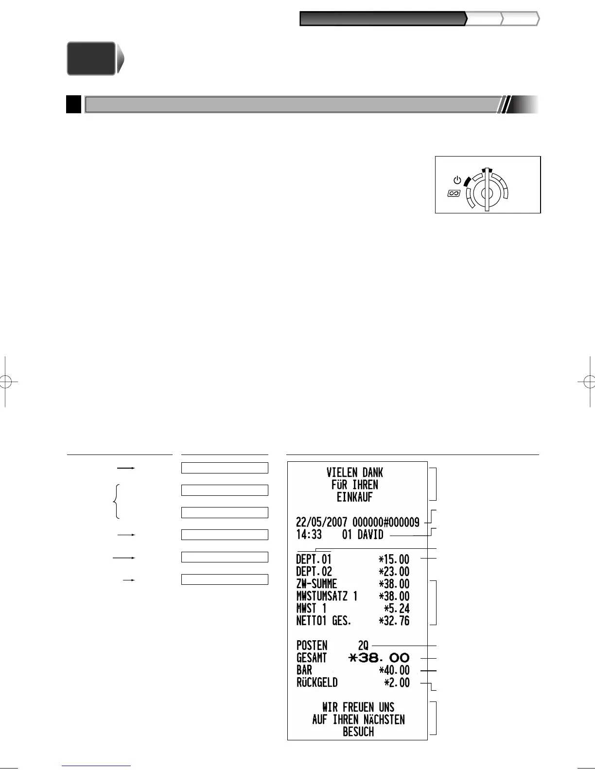 8. Reißen Sie den Kassenbon ab, und übergeben Sie diesen gemeinsam mit dem Wechselgeld dem Kunden.