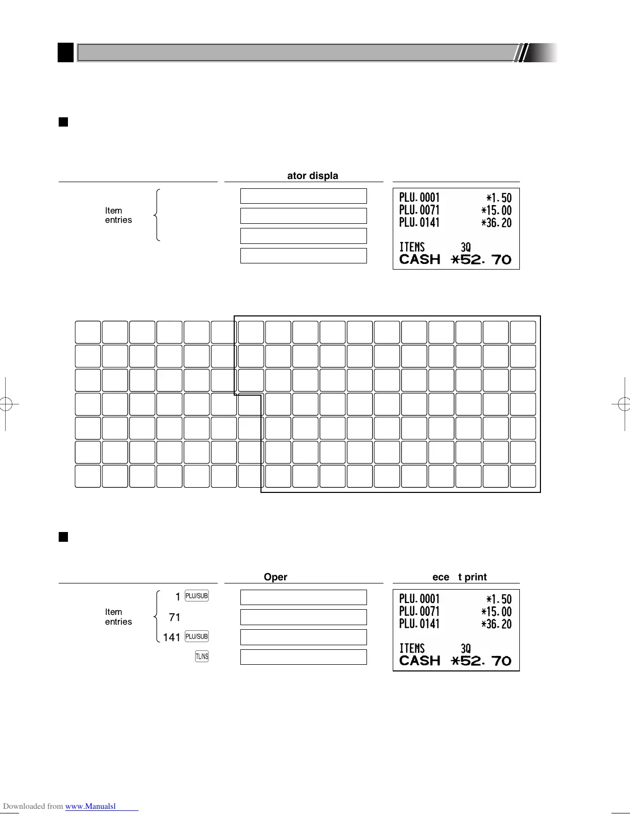 The cash register allows you two ways of entering PLUs; direct PLU entry and PLU code entry. For more
