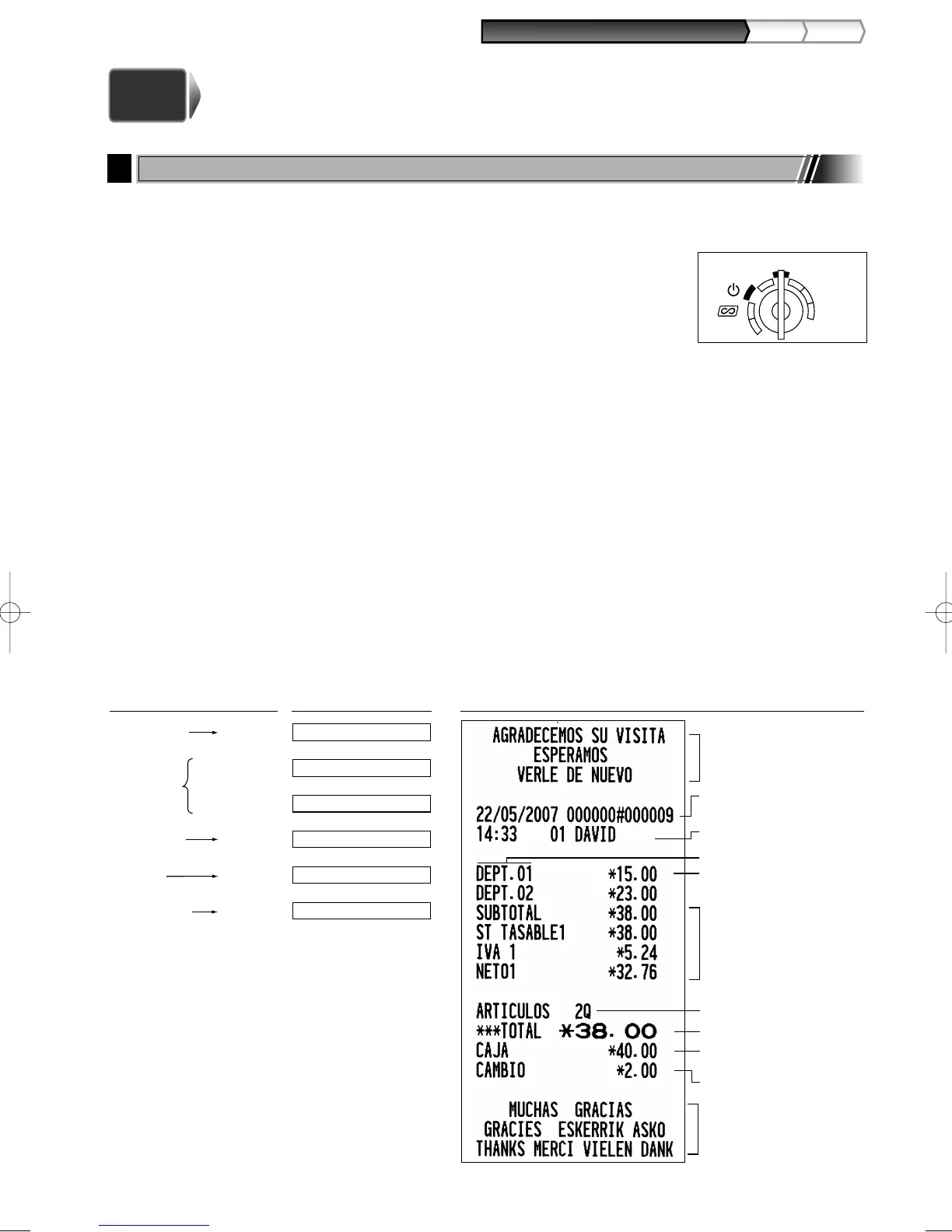 A continuación se muestra un ejemplo de registro básico de ventas en metálico de artículos. Para los detalles de