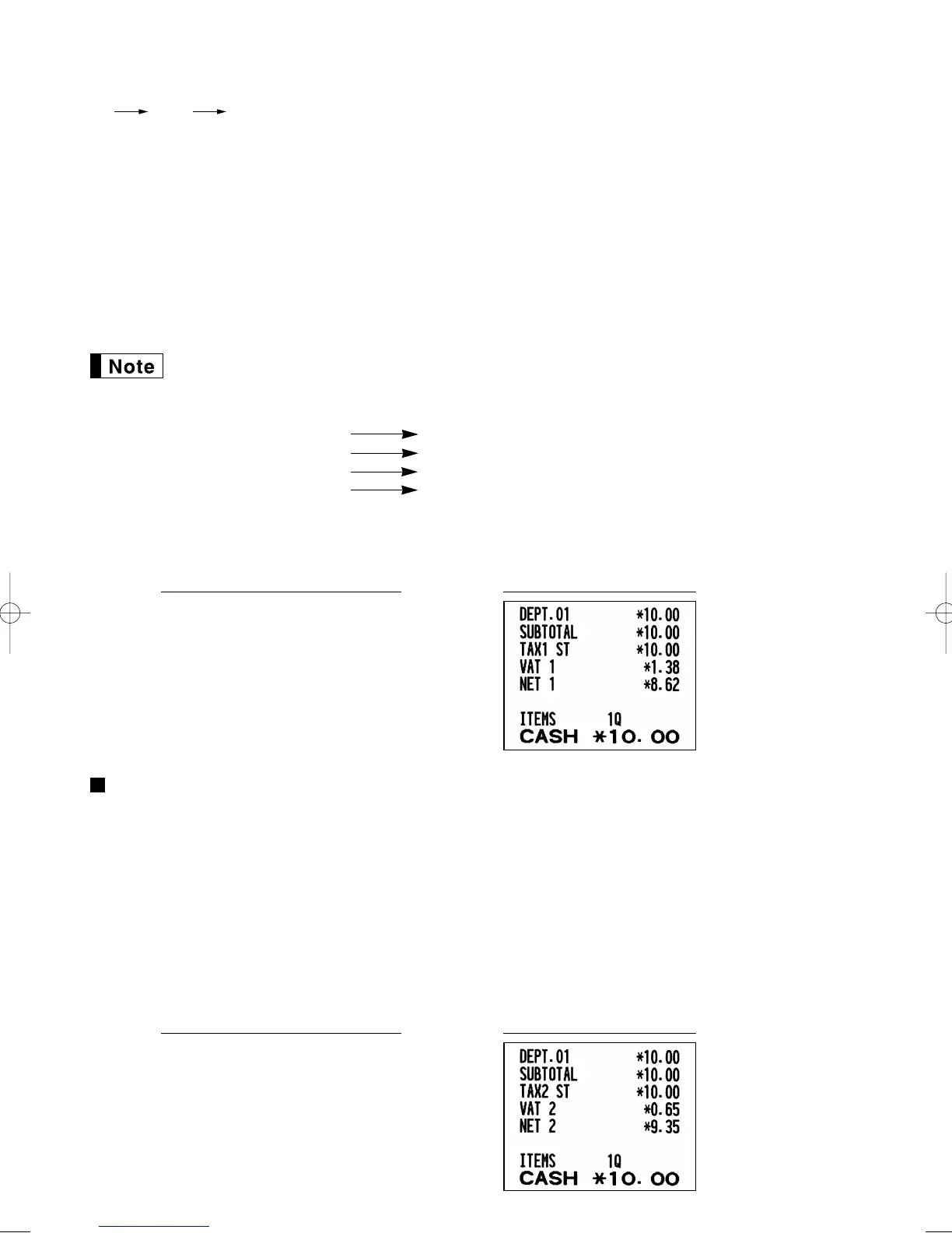 assigned to VAT/tax rate will be printed. For programming, please refer to “Various Function