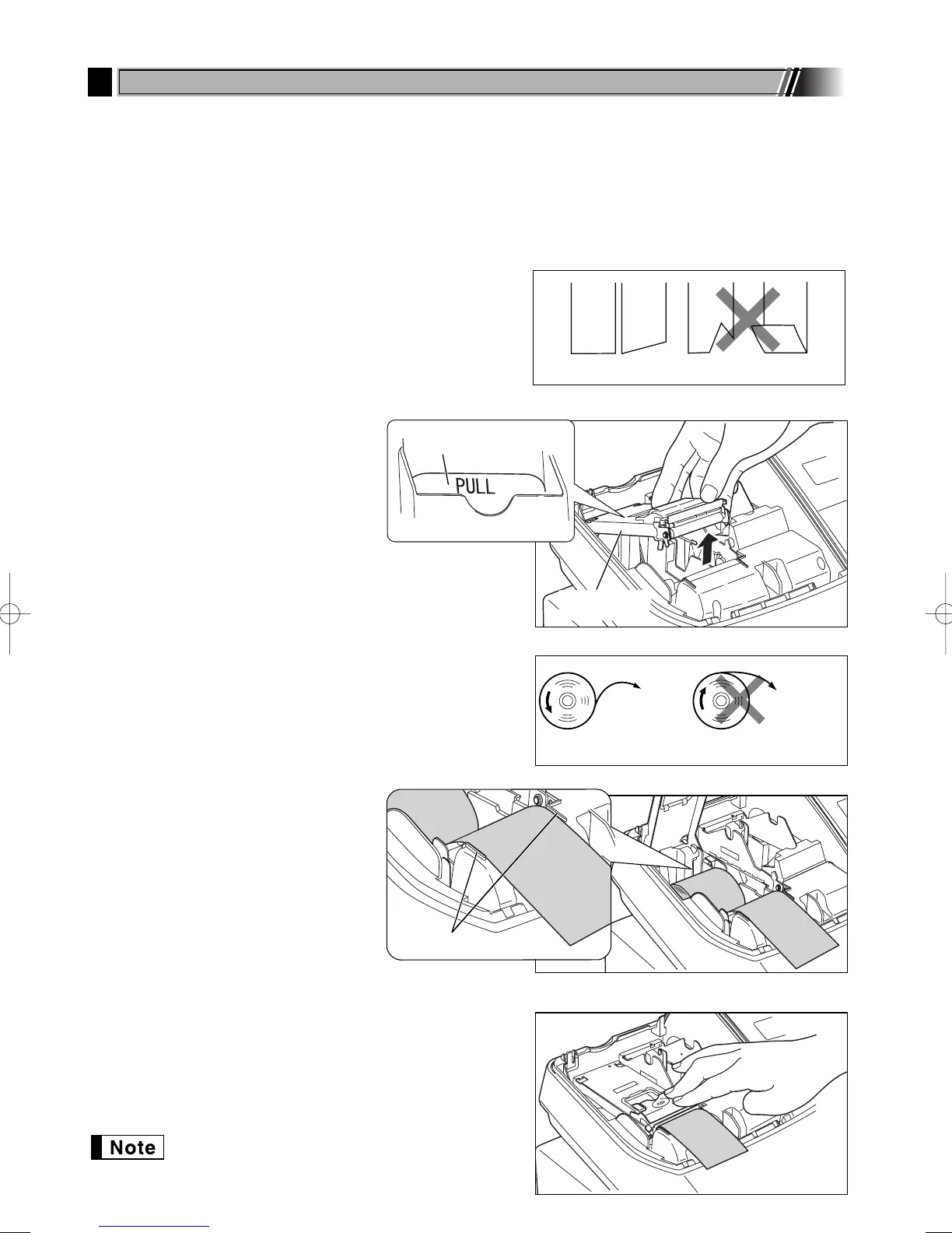 Install the paper rolls according to the procedure shown below with the power cord connected and the mode