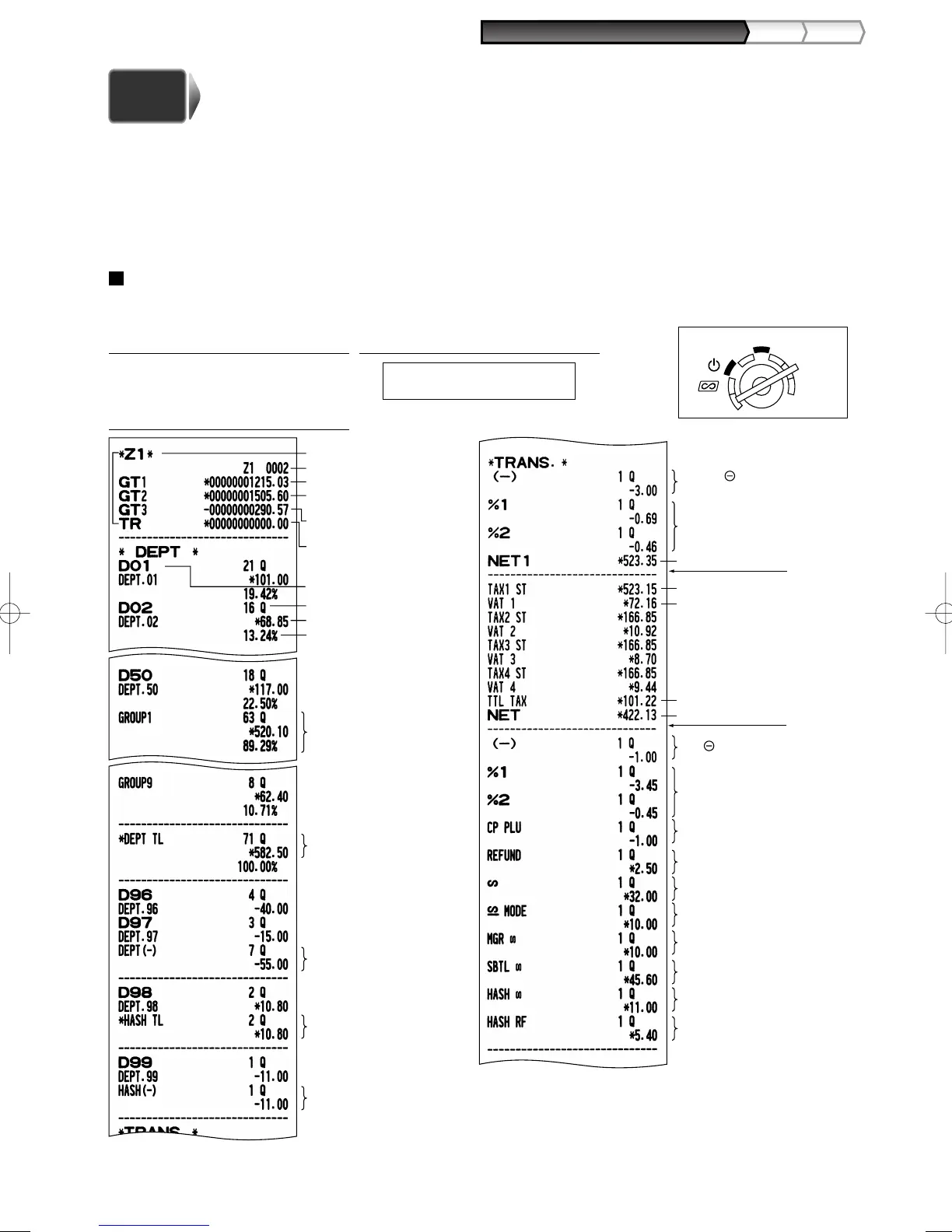 For more information about resetting (Z) of sales totals, refer to "READING (X) AND RESETTING (Z) OF SALES