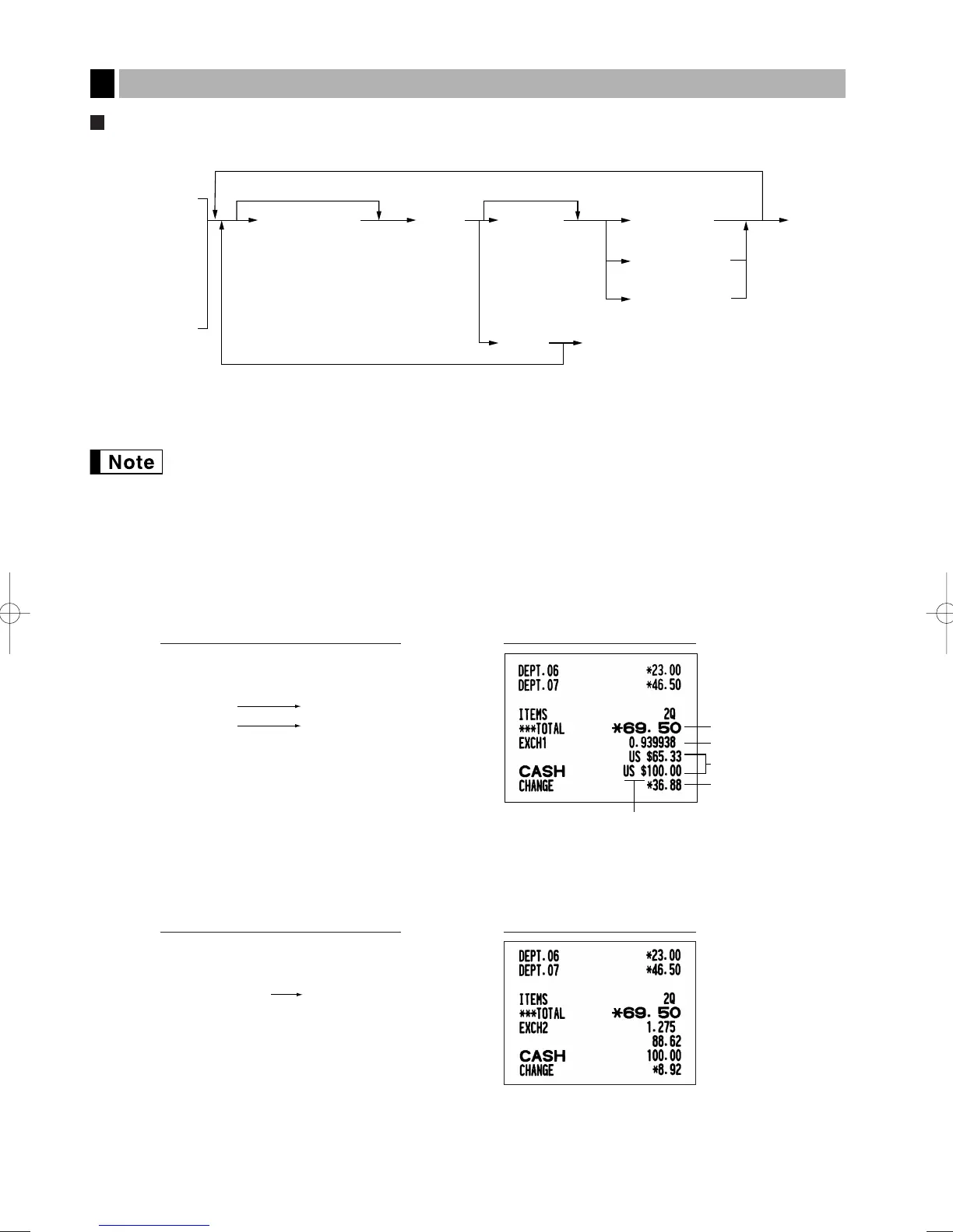 • If programmed, a foreign currency symbol is printed when you use a preset rate. Refer to