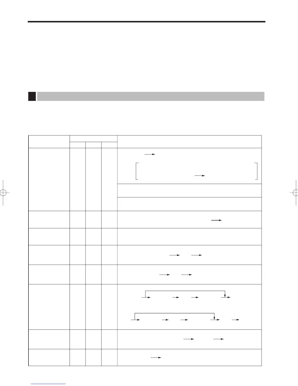 “Mode switch position” shown on the table below, and use the following corresponding key sequence.