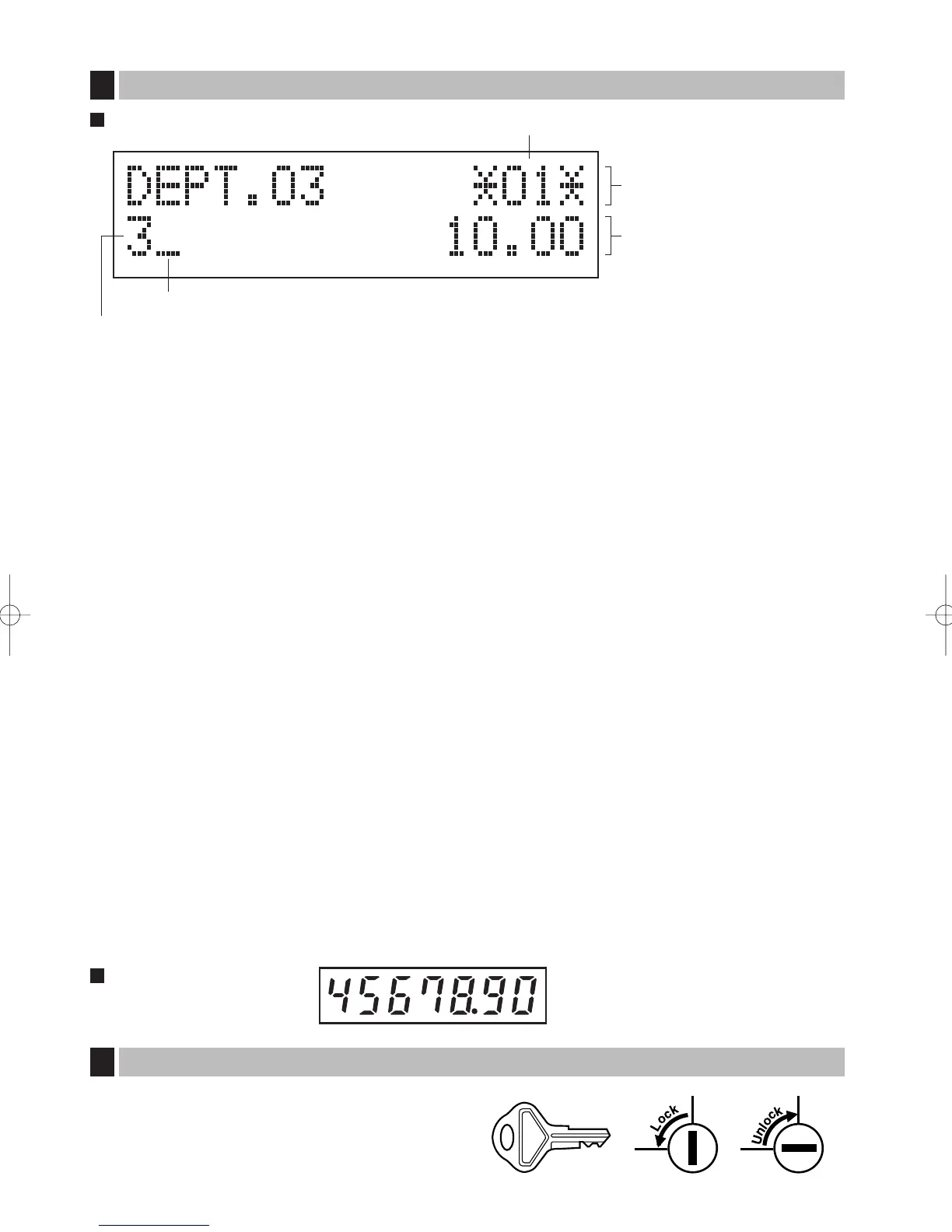 When the cash register goes into the power save mode, the power save mark (decimal point) lights up.