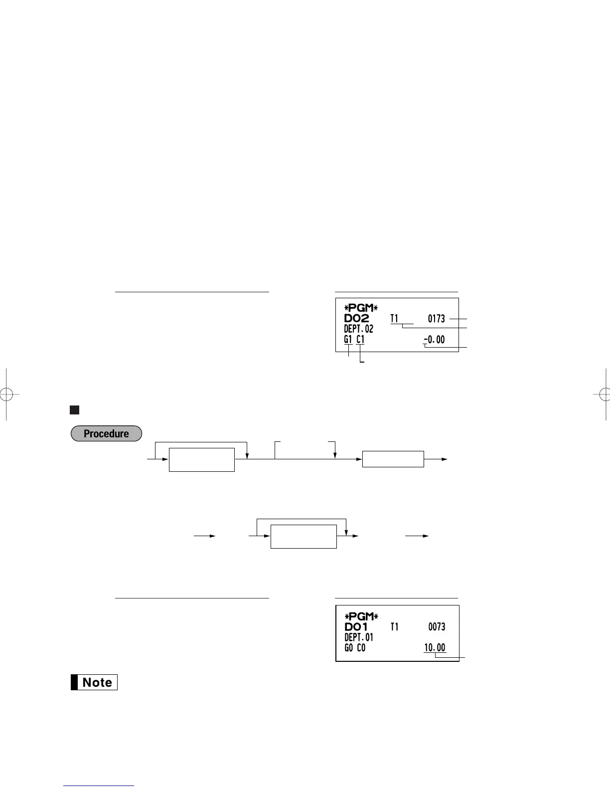 Example: Programming department 2 as normal dept. group 1, commission group 1, taxable 1, SICS, negative