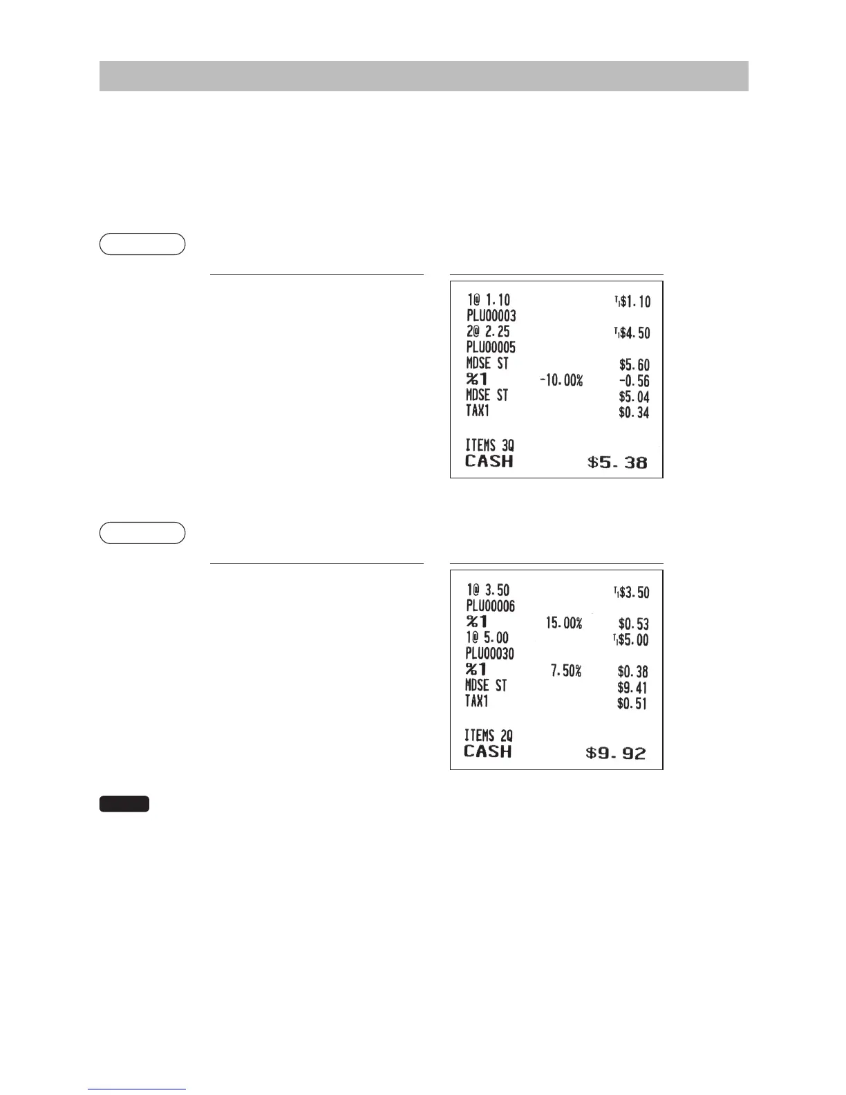 • Your register provides percent calculations for a subtotal or each item entry depending on the