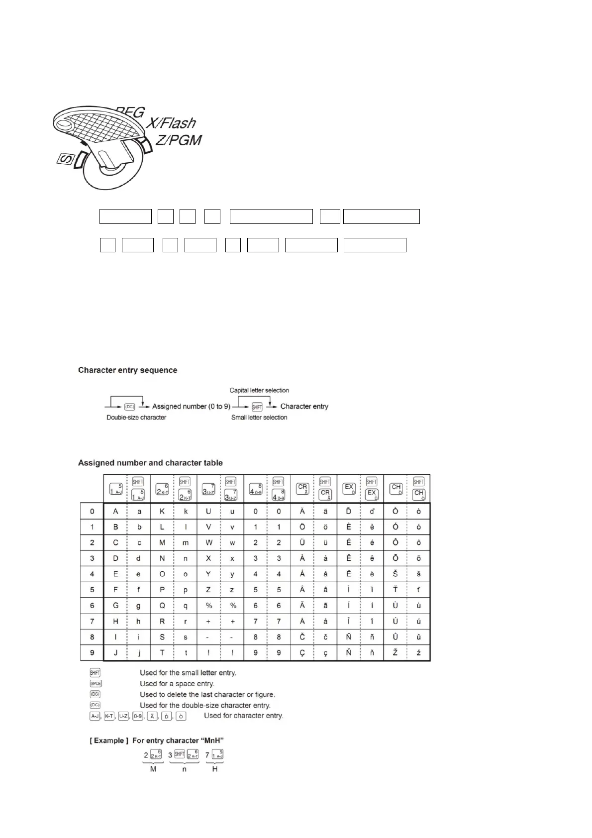 You can enter characters with the department and function keys. You will see the