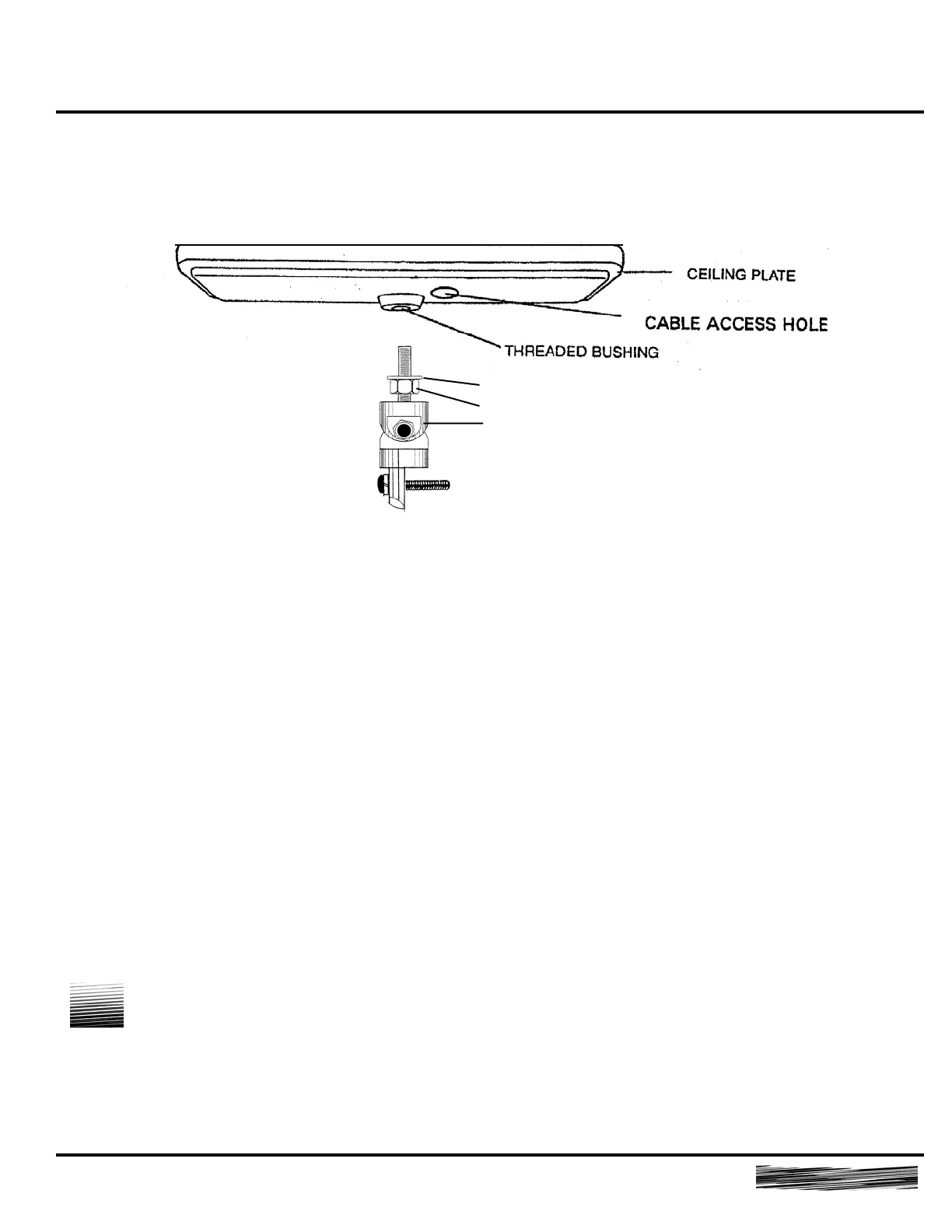 5.5 Tighten the locking nut against the ceiling plate using a 3/4” open end wrench or an adjustable