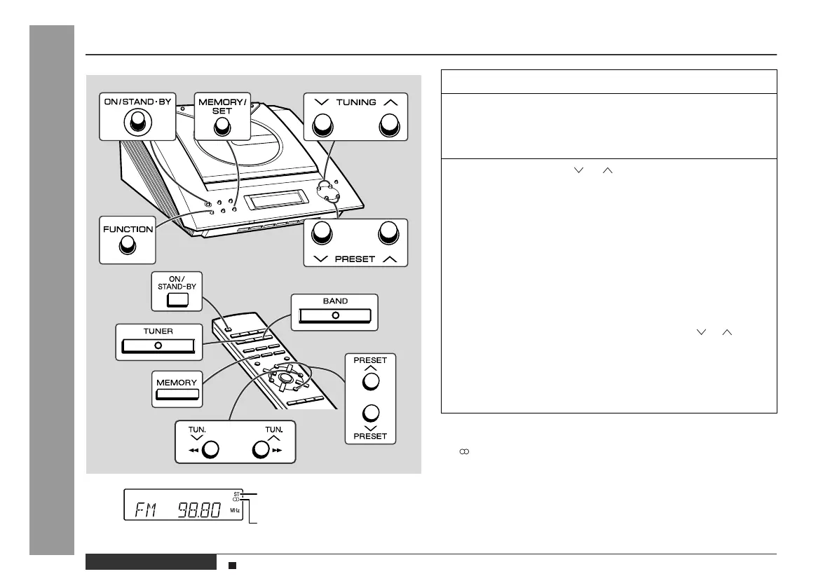 When operating with the remote control, press the TUNER but-