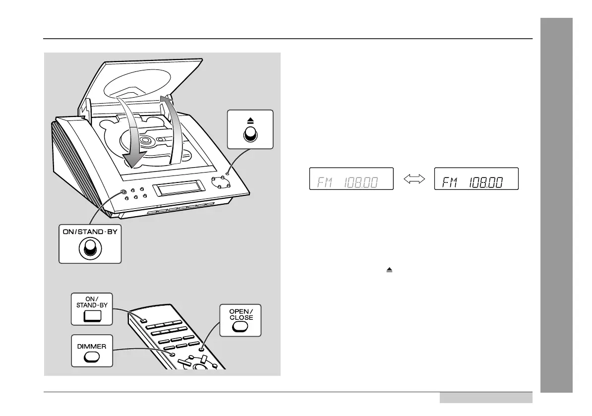 On peut assombrir ou éclaircir l'afficheur en pressant la touche DIM-
