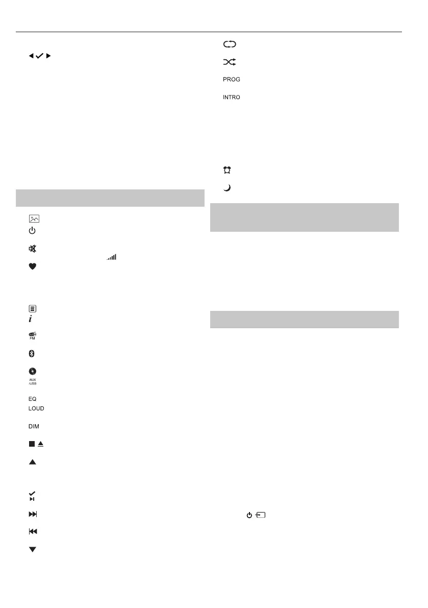 In DAB+/FM-modus:• Kort indrukken: Voorinstelling opvragen.•