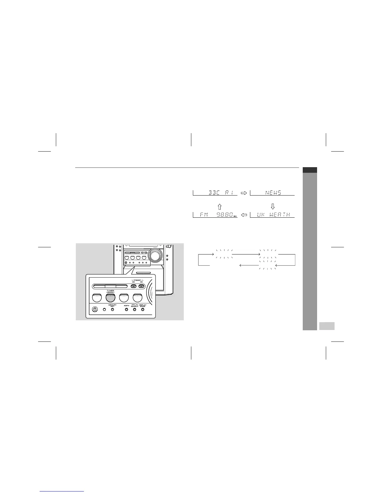 When tuned to an RDS station, "RDS" and the station name will be