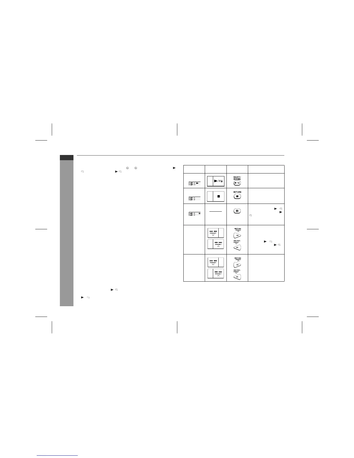 ! SELECT/RESUME button on the remote control: The unit