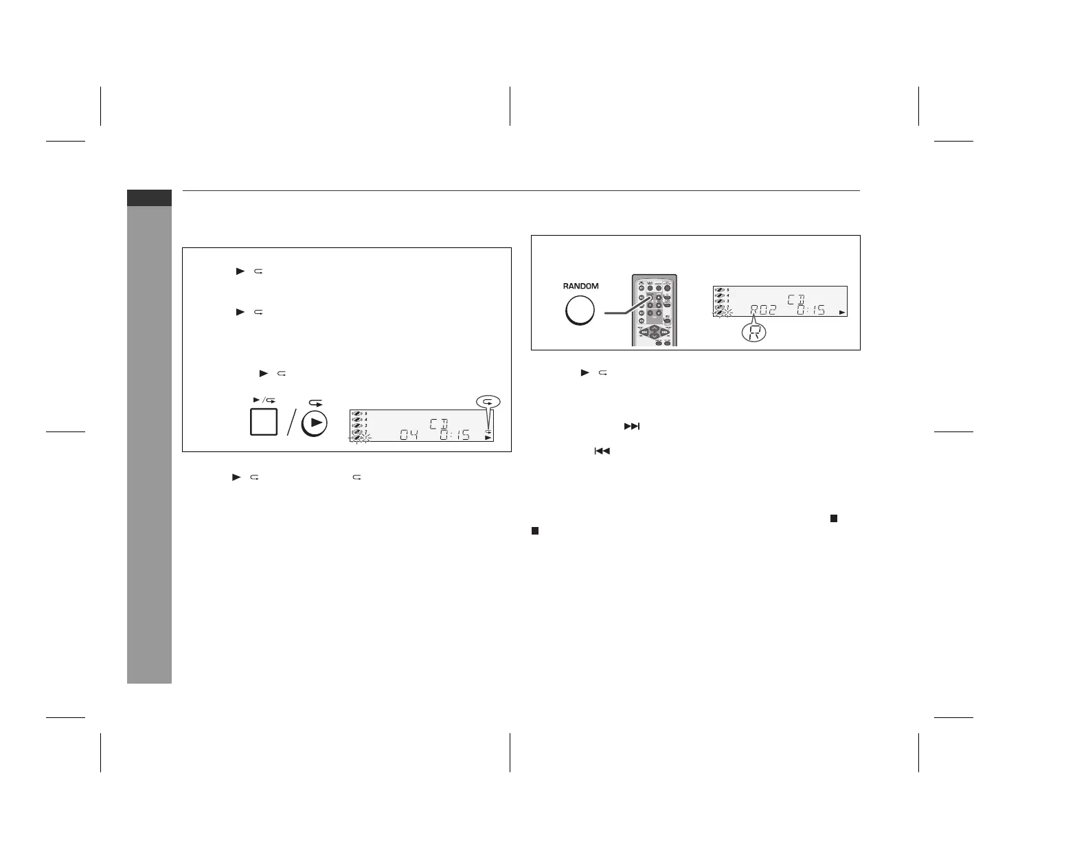 After performing repeat or random play, be sure to press the (CD