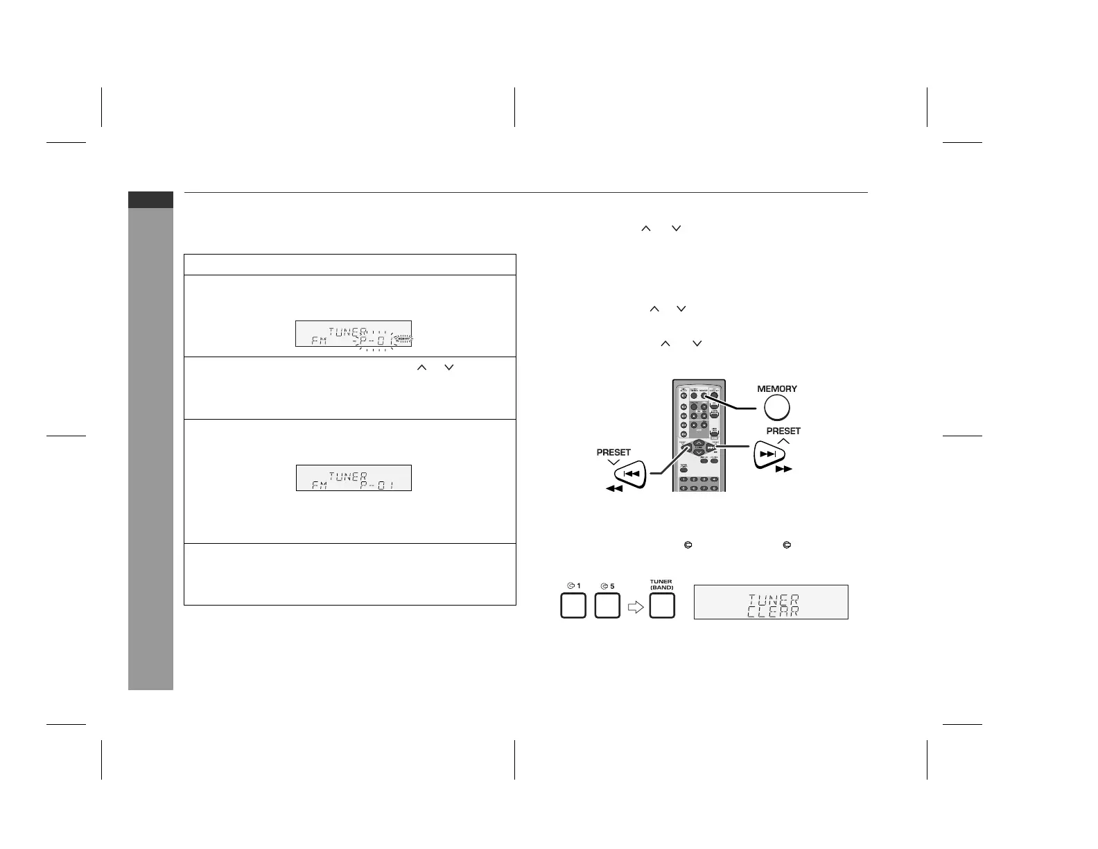 2 Press the MEMORY button to enter the preset tuning