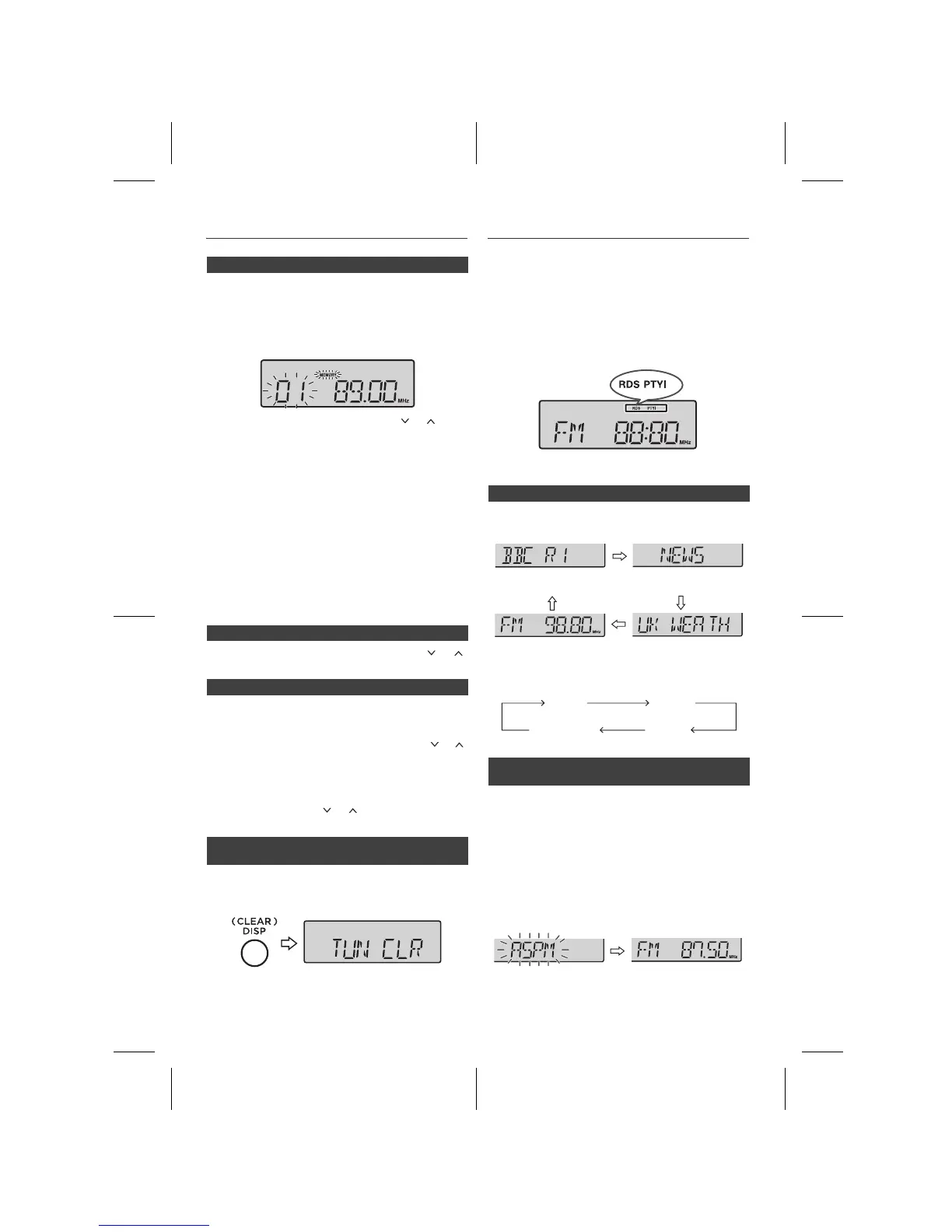 Ob vsakem pritisku gumba RDS DISPLAY se bo zaslon