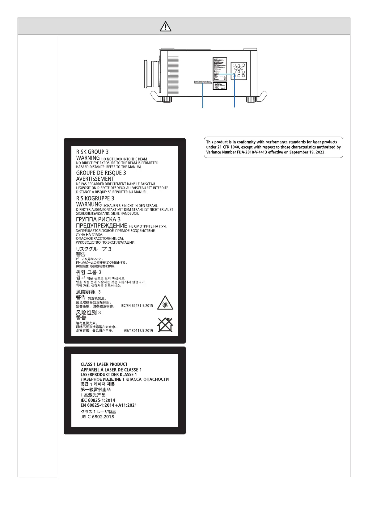 • See projektor on klassitseeritud standardi IEC/EN 62471-5:2015 riskirühmana 3.