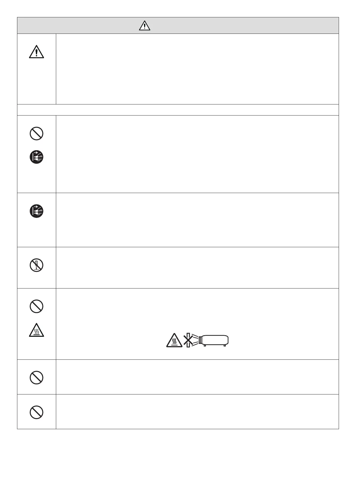 • Steek geen metalen of ontvlambare voorwerpen of andere vreemde voorwerpen in de projector via de ventilatieopeningen.