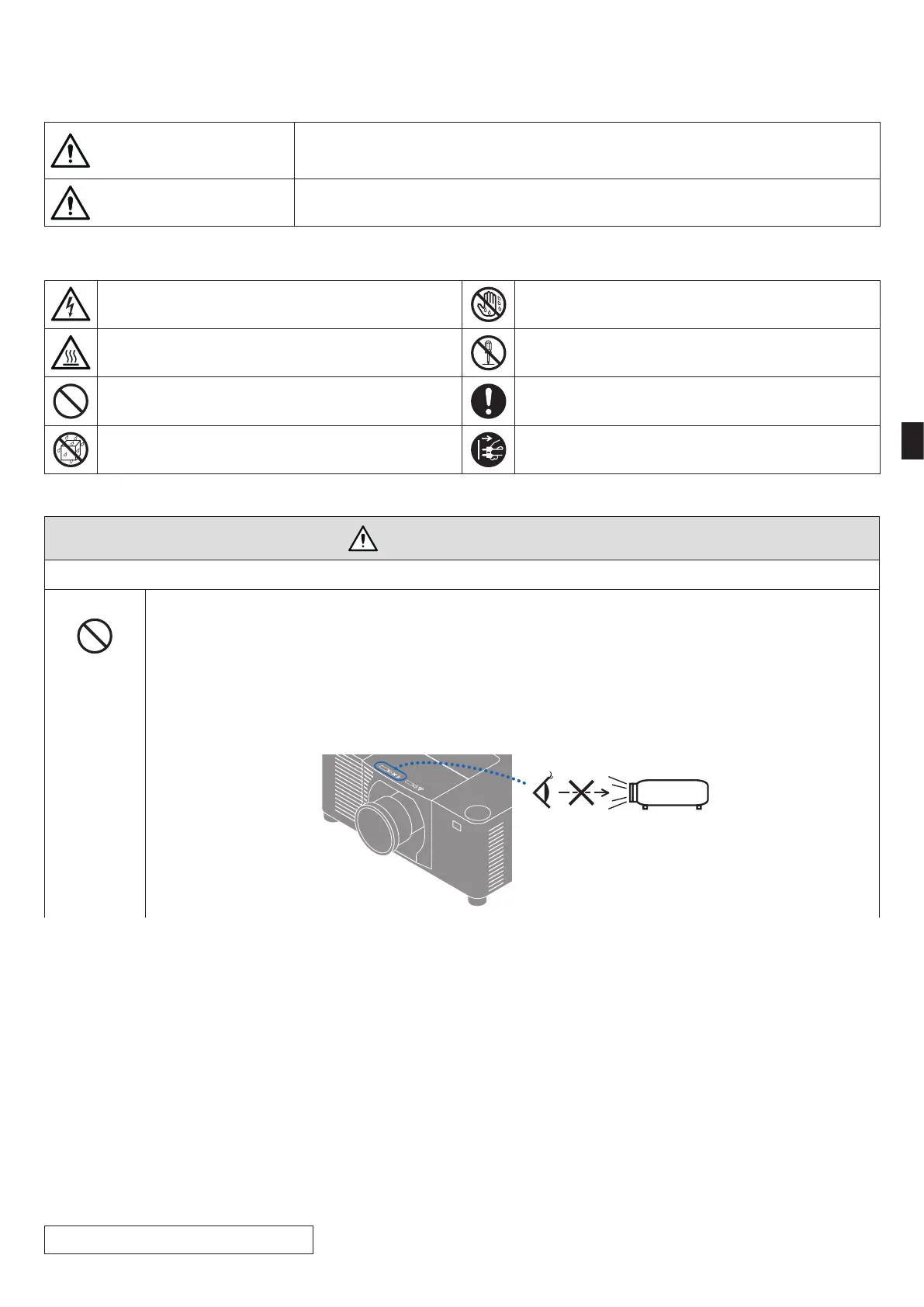 • Прежде чем включать проектор, убедитесь, что никто смотрит в объектив во всем диапазоне проецирования.