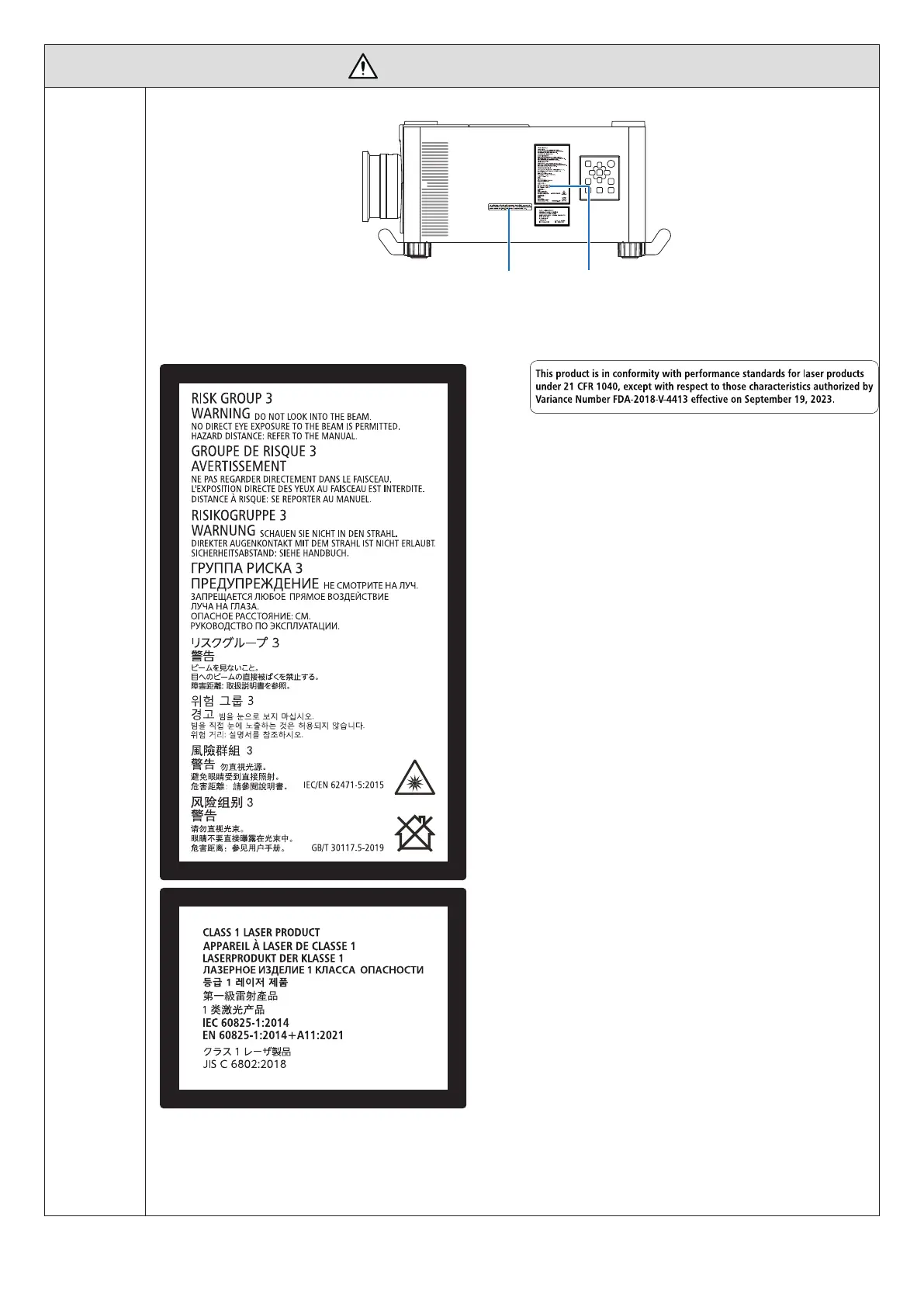 • Этот проектор относится к группе риска 3 согласно стандарту IEC/EN 62471-5:2015.