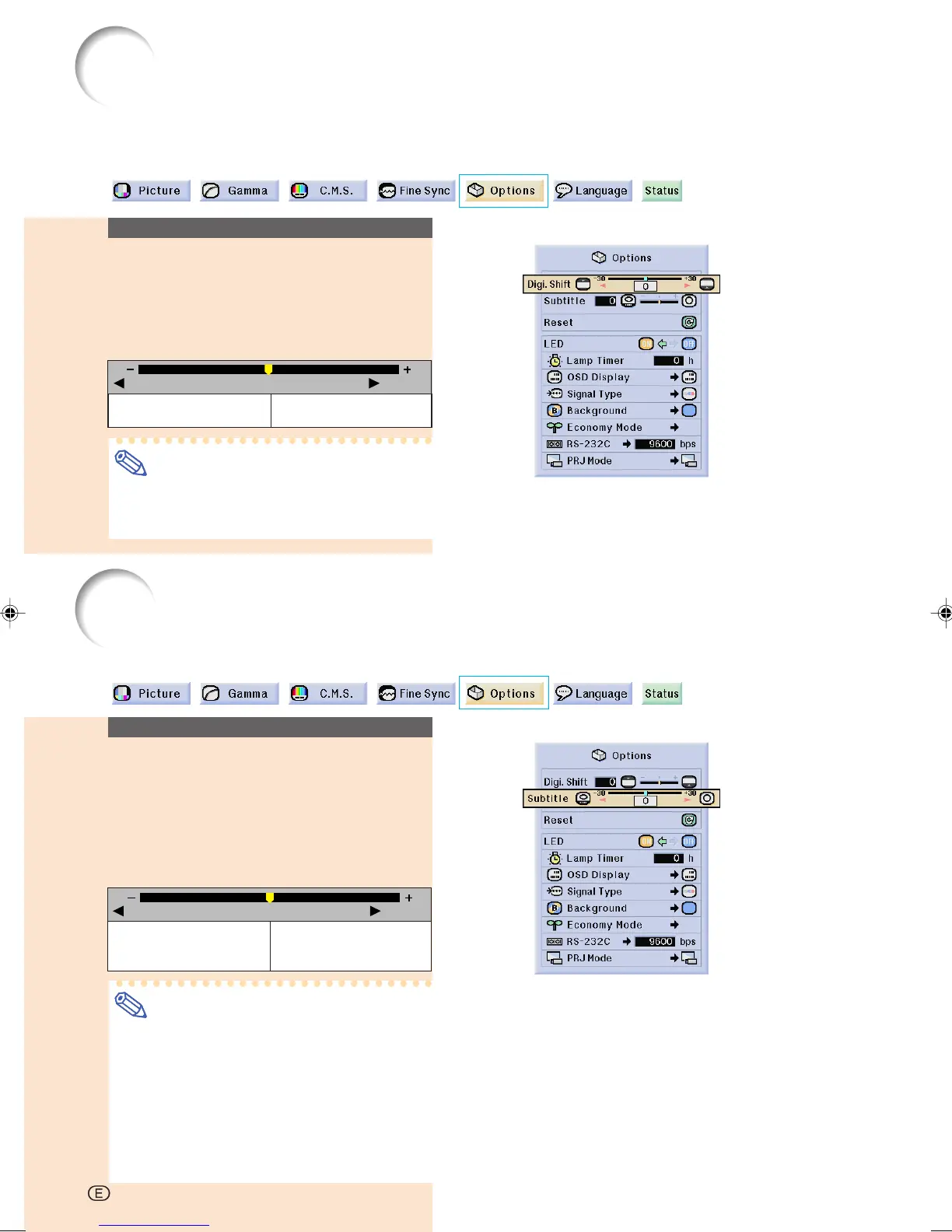 For easier viewing, this function shifts the entire image projected on the screen up or down when