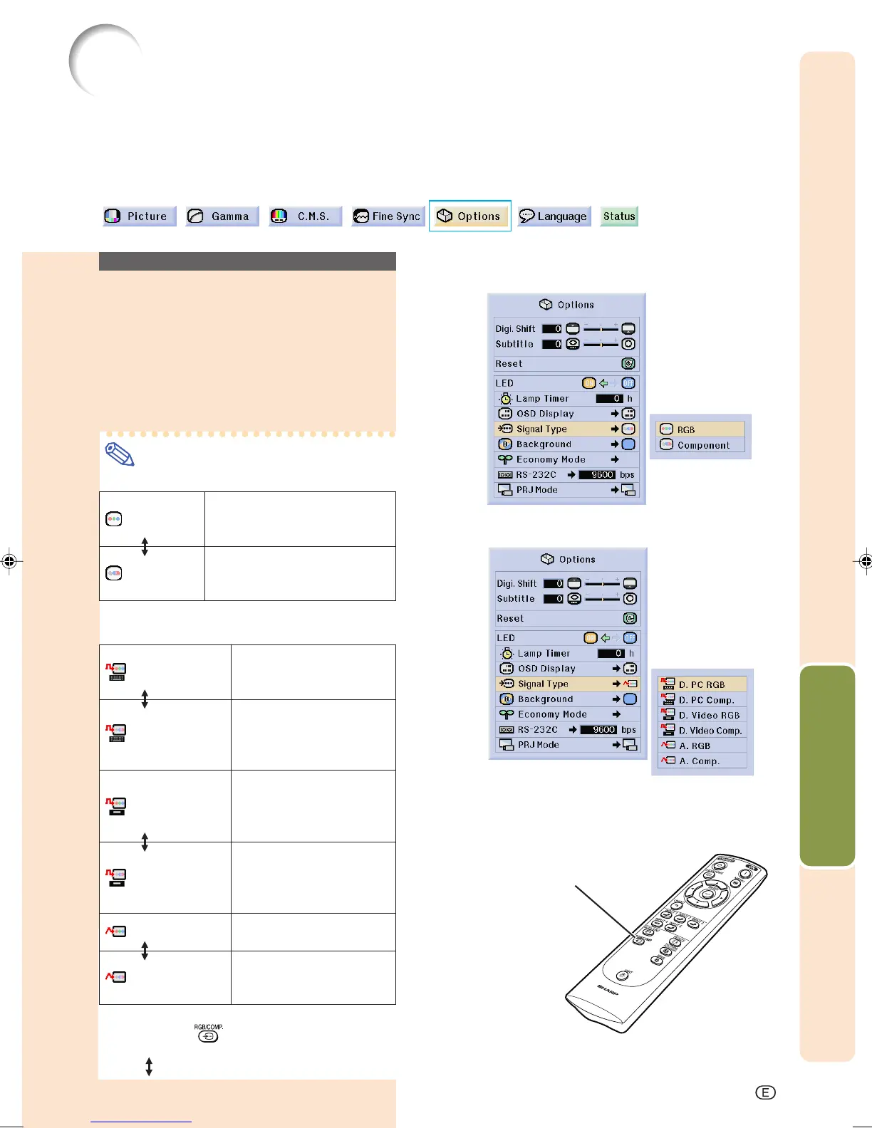 This function allows you to select the input signal type RGB or Component for INPUT 1 and