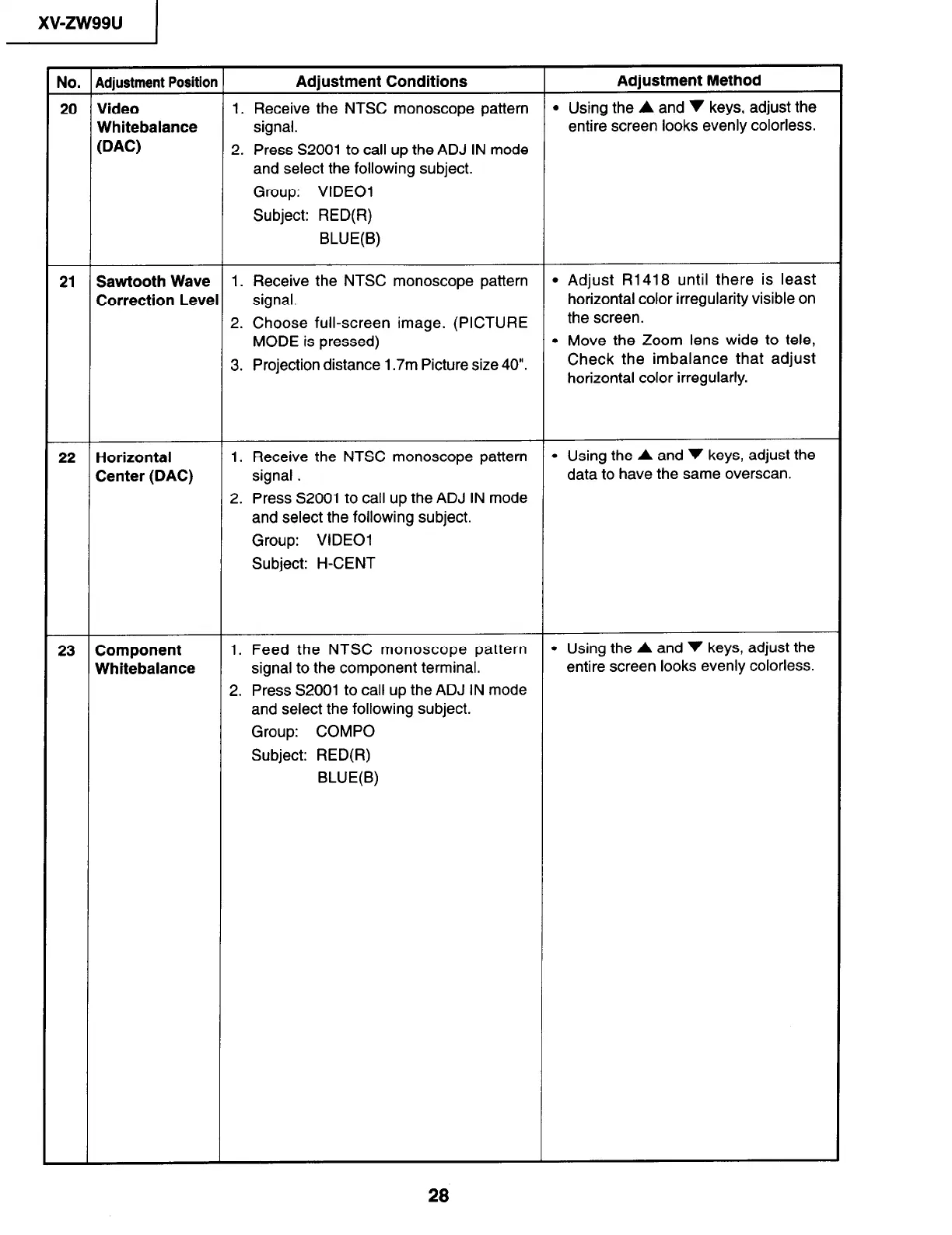 20 Video 1. Receive the NTSC monoscope pattern l Using the A and v keys, adjust the