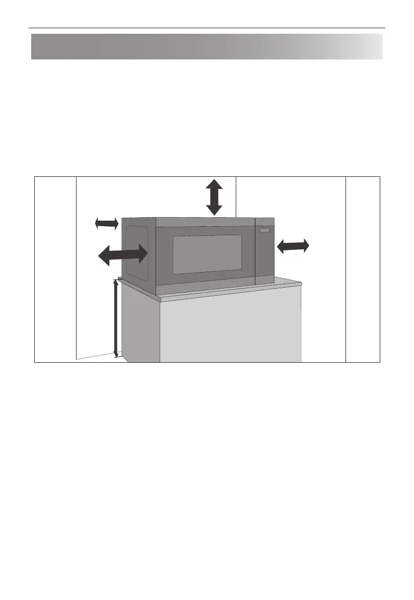 • Tarp krosnelės šonų ir gretimų daiktų ar sienų reikia palikti bent 20 cm tarpą.