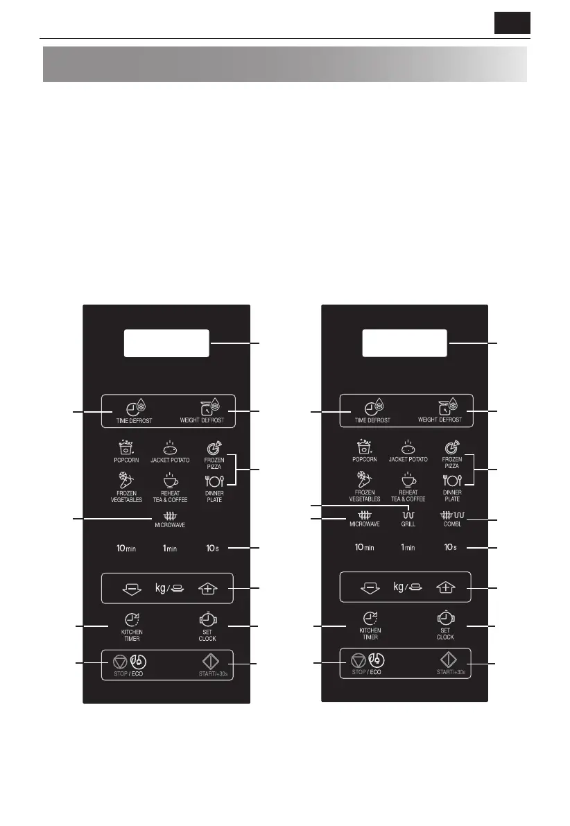 1. DISPLEJ – zobrazí sa doba prípravy jedla, výkon, indikátory a čas hodín.