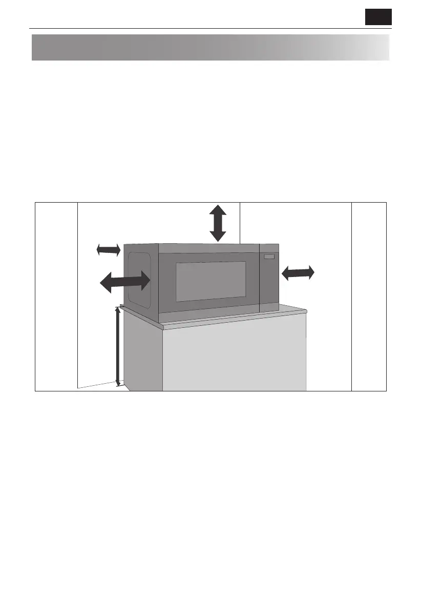 • Mikrolaineahju külgede ja kõrval asuvate seinte või esemete vahele peab jääma vähemalt 20 cm vaba ruumi.