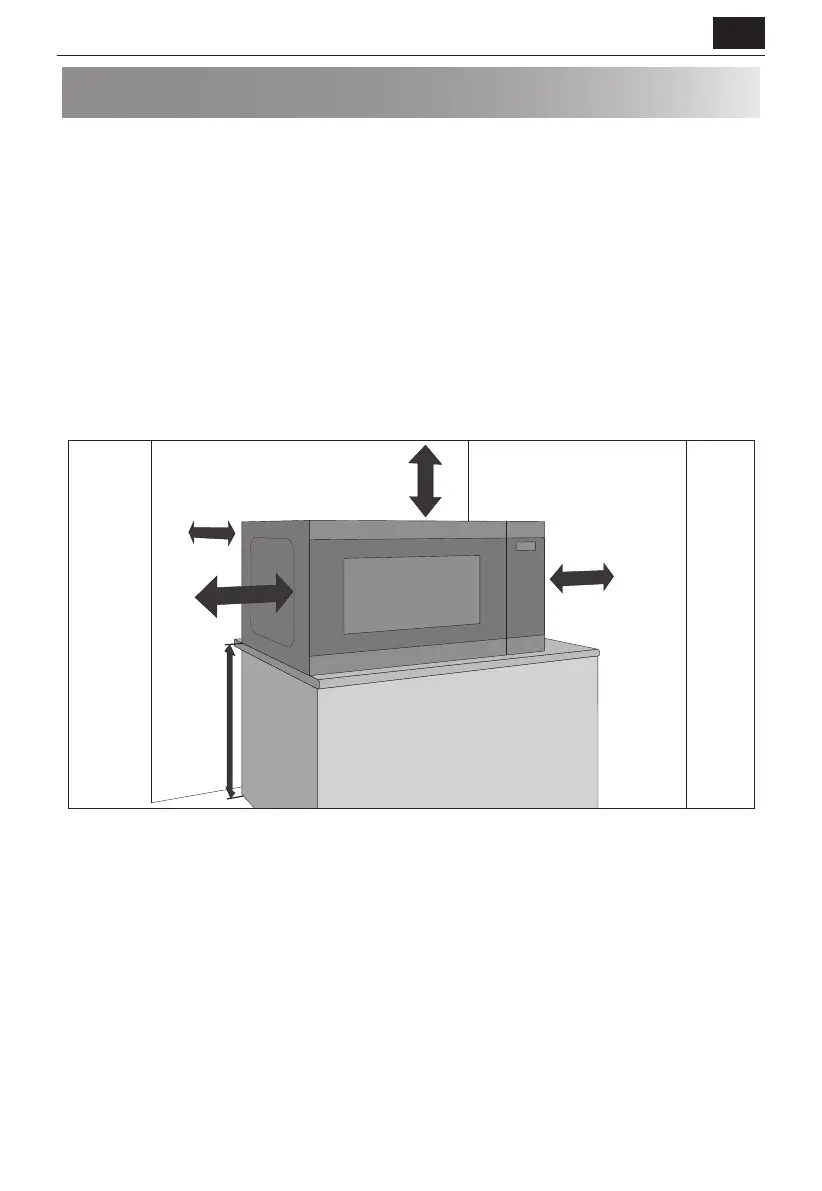 3. Plaats de oven op een veilig, vlak oppervlak, dat sterk genoeg is om het gewicht van de combi-magnetron plus de