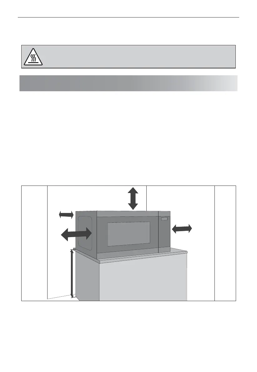 • A minimum space of 20 cm is required between the sides of the microwave oven and any adjacent walls or objects.