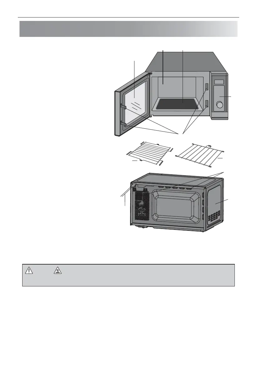 cabinet, oven cavity, accessories and dishes will become very hot during operation. To prevent burns,
