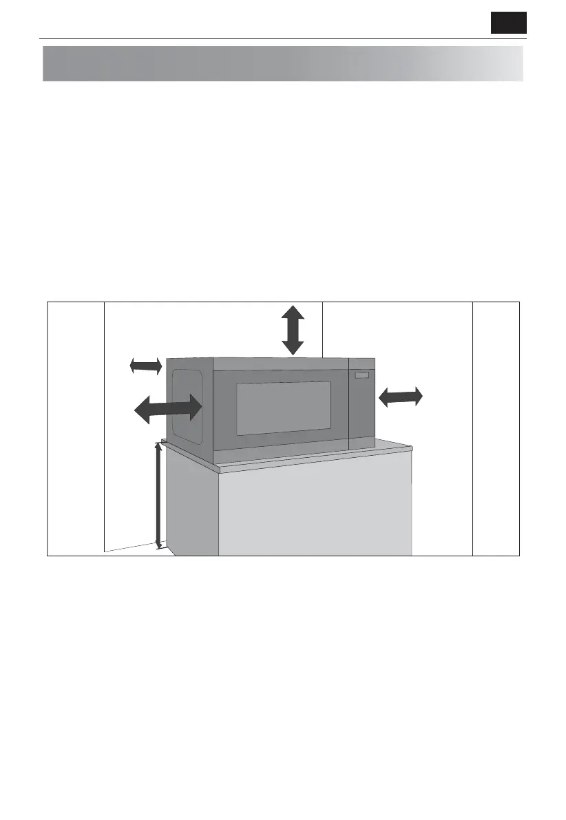 • Es muss ein Mindestabstand von 20 cm zwischen den Seiten des Mikrowellengeräts und allen angrenzenden Wän-