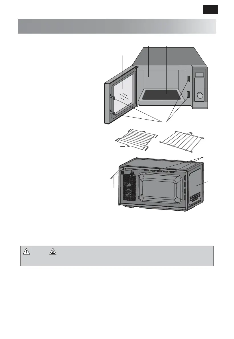 porta, o compartimento exterior, a cavidade do forno, os acessórios e pratos carão muito quentes durante