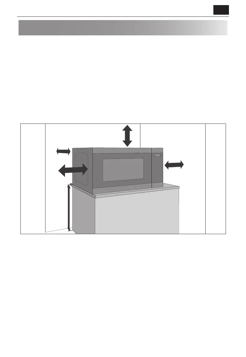 • È richiesto uno spazio minimo di 20 cm tra i lati del forno a microonde e qualunque parete adiacente.