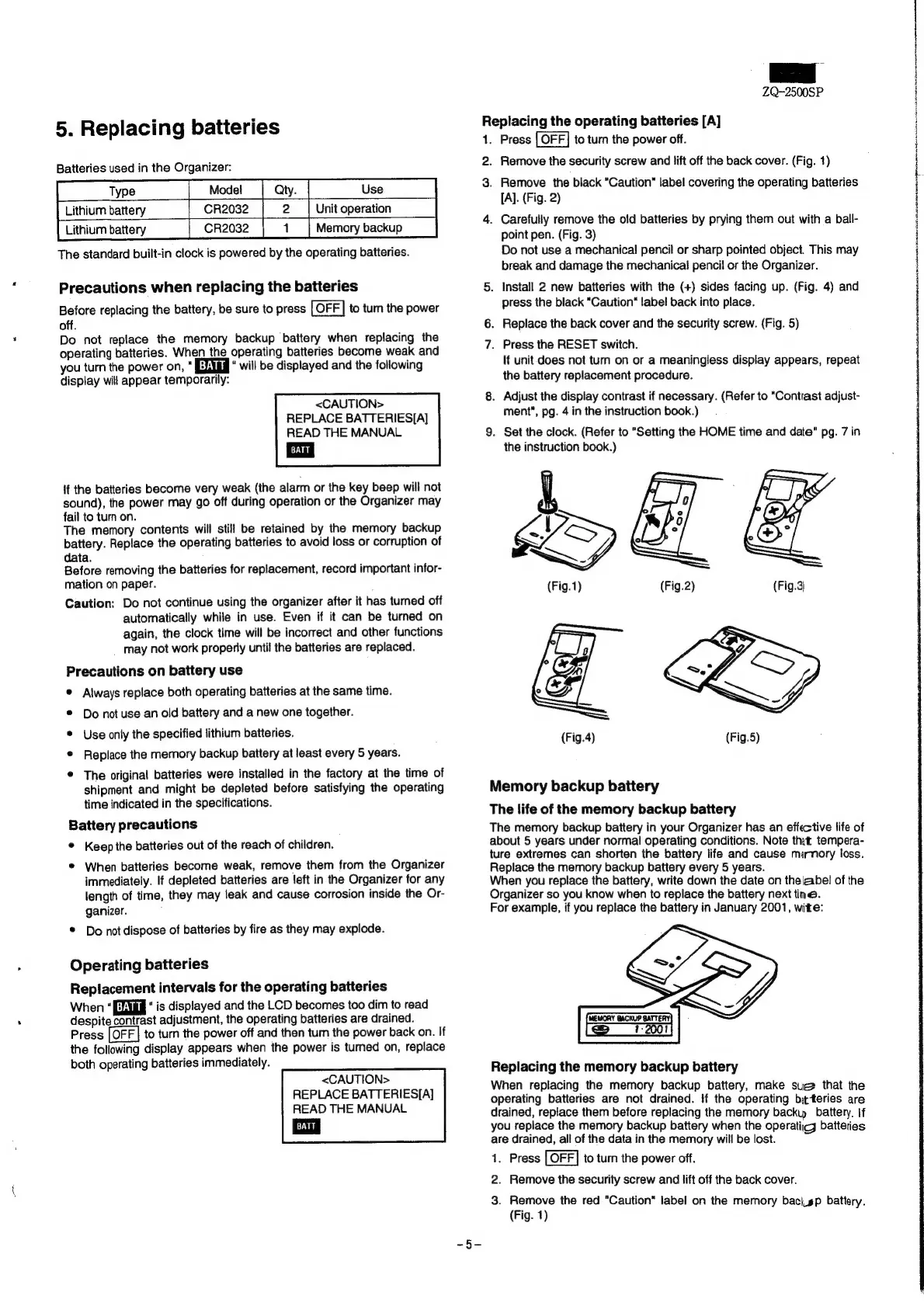 Sharp YO-250M - Replacing Batteries